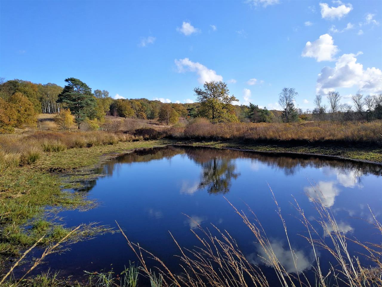 Auch heute empfängt mich das mit kleinen Seen („Vennen“) durchsetzte Heidegebiet wieder mit wunderbarem Herbstwetter.