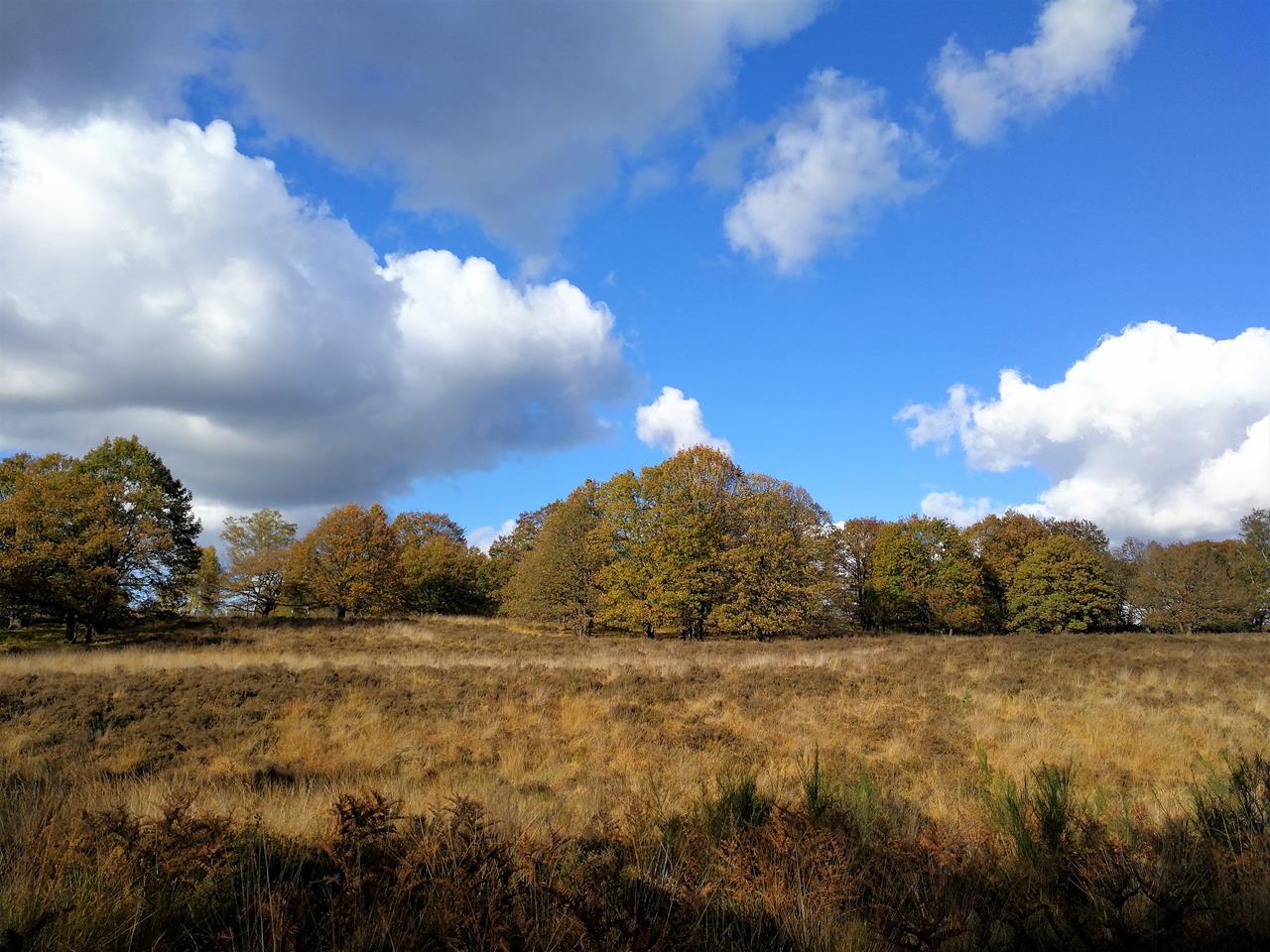 An der Deutsch-Niederländischen Grenze östlich von Roermond erstreckt sich auf niederländischer Seite der beliebte Nationalpark De Meinweg. Dort waren Heike und ich heute bei „goldenem Oktoberwetter“ auf einer 15 km langen Wanderung ab Herkenbosch unterwegs.