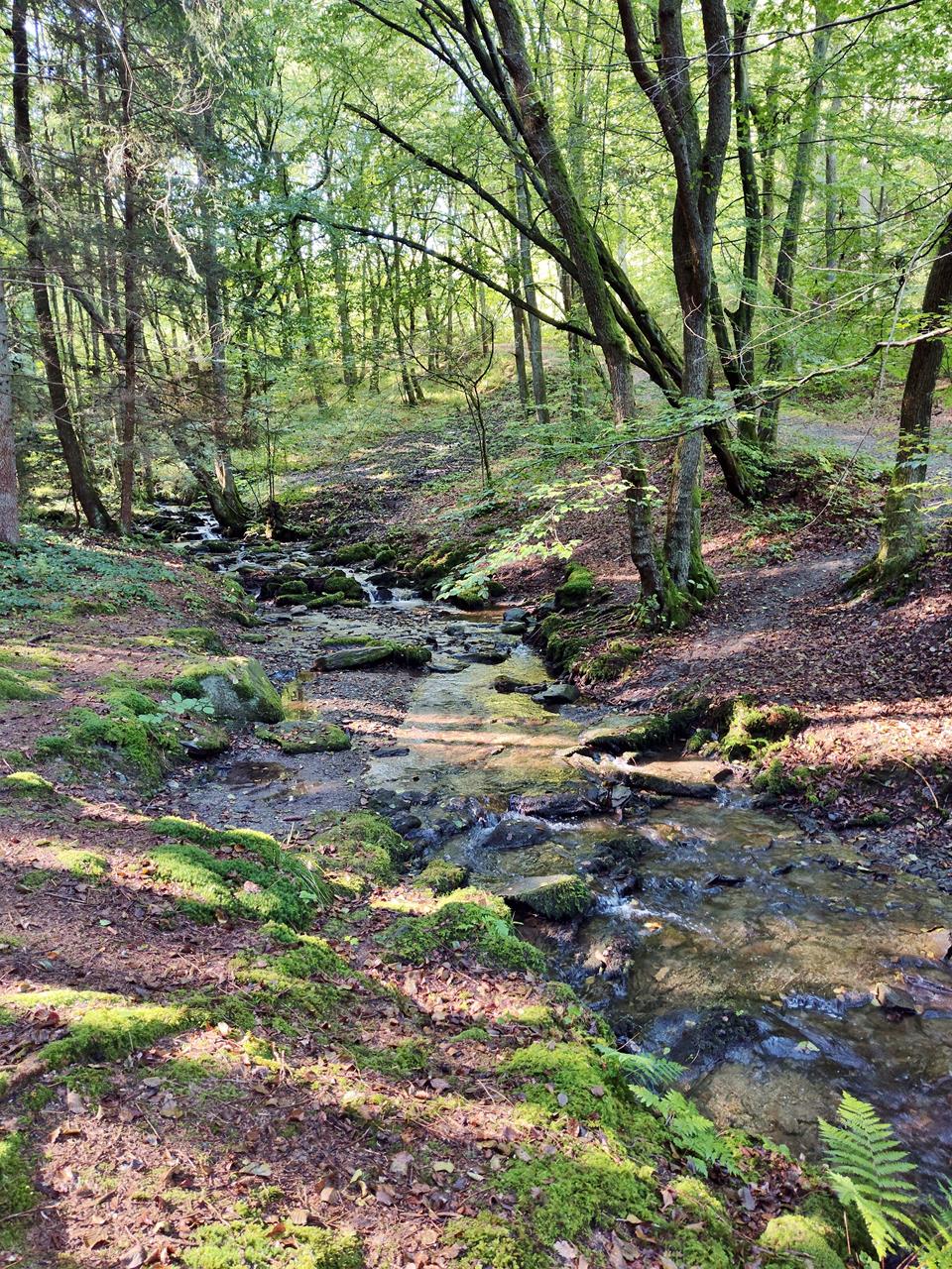 Hinter Höfen laufen wir zunächst zwischen Weiden und Waldabschnitten hinunter ins malerische Kluckbachtal. An der Mündung des Kluckbachs in die Rur wechseln wir die Flußseite und laufen nun entlang der Rur bis nach Monschau.Dort ist an diesem sonnigen Sonntagmittag richtig was los. Wir sind froh, einen Schattenplatz in einem der Straßencafés zu bekommen.