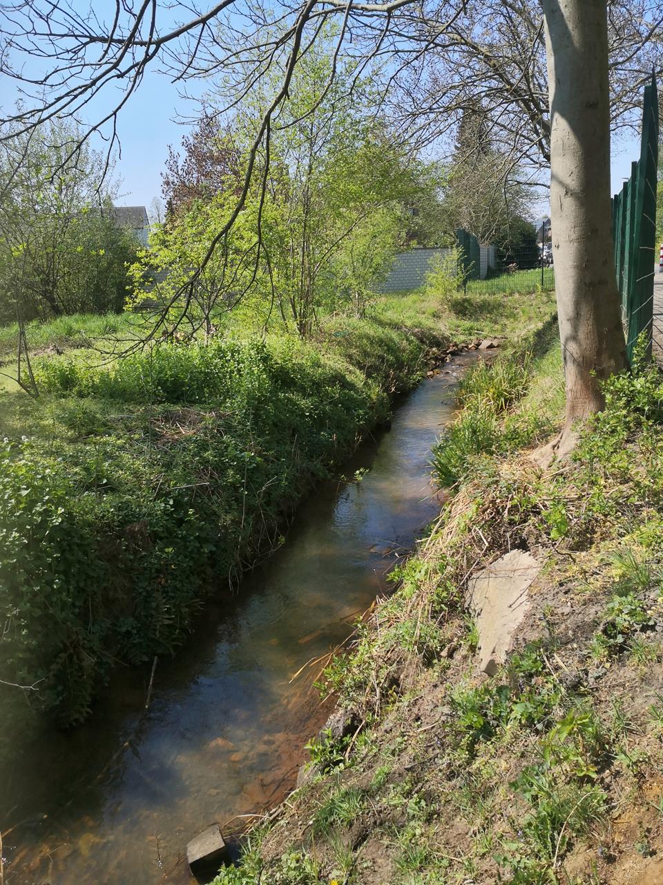 Erst nach einiger Suche habe ich den Bachlauf auf der Westseite des Ortes wieder entdeckt, dort, wo er in die Kanalisation einmündet.