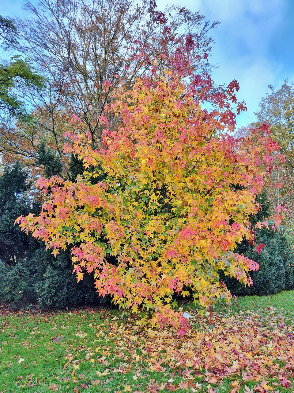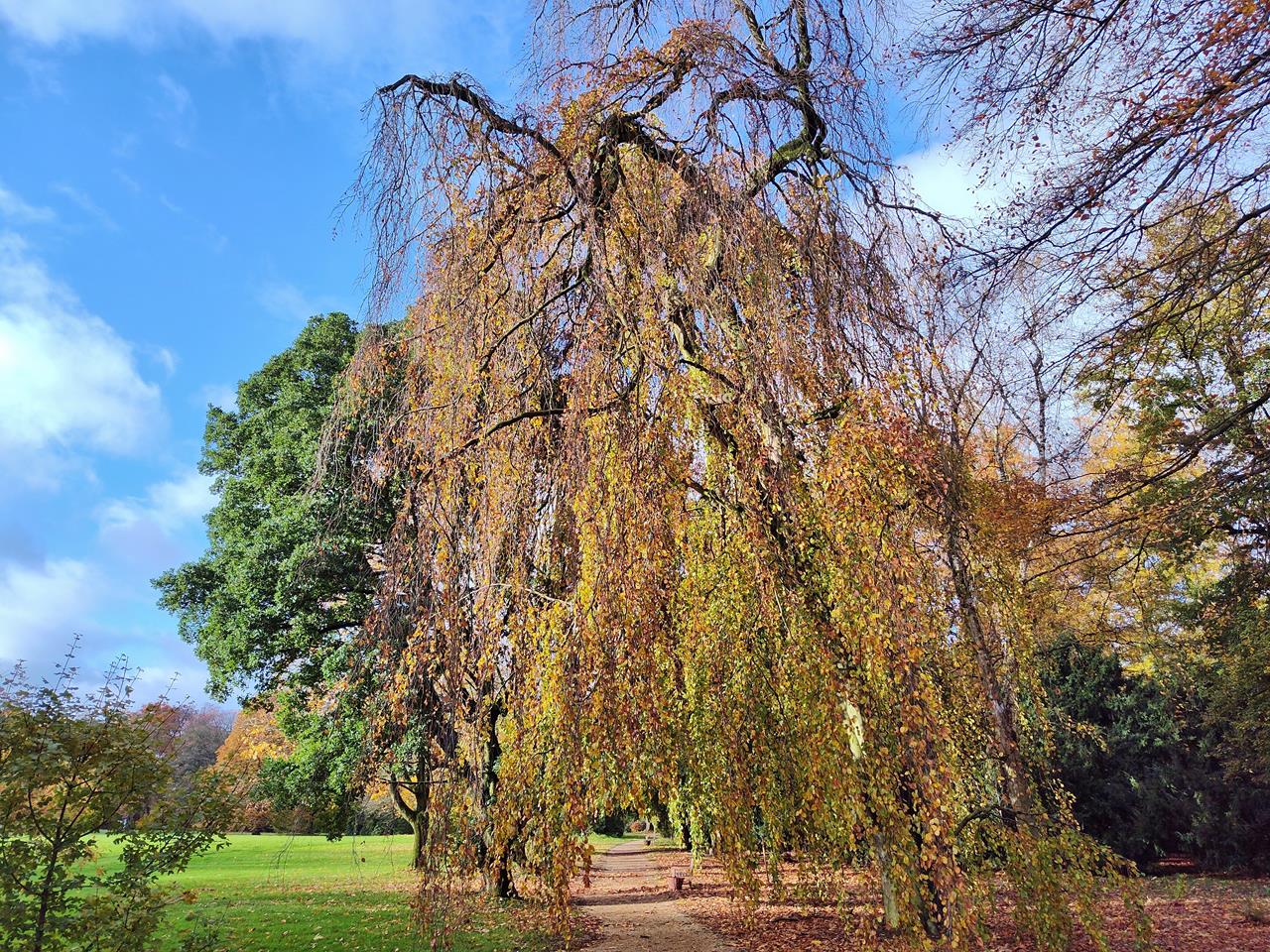 Also habe ich gleich mit Doxi den Schlosspark angesteuert, um noch ein wenig vom Herbstbunt zu erhaschen. Der Park verfügt über einen großen Baumbestand mit Pflanzen aus aller Welt. Einfach herrlich, wie die Blätter jetzt in der Sonne leuchten.