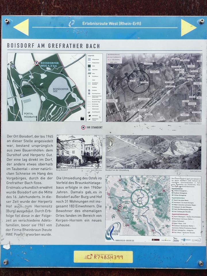 Unweit des Schlosses überqueren wir die Autobahn A 61 und laufen in südlicher Richtung durch den Parring auf den Kerpener Bruch und die Erft zu. Die beiden Bruchgebiete sind Restbestände der früher weit verbreiteten Hartholzauen aus Eichen, Ulmen und Erlen in der Flussniederung der Erft.Wir wandern am Rande des Kerpener Bruches an der Erft entlang und kommen an einer interessanten Wasserkreuzung vorbei. Das Wasser der Kleinen Erft kommt aus dem Kerpener Bruch und wird mittels einer Wasserbrücke über die Erft geführt, um in östlicher Richtung weiterzufließen.