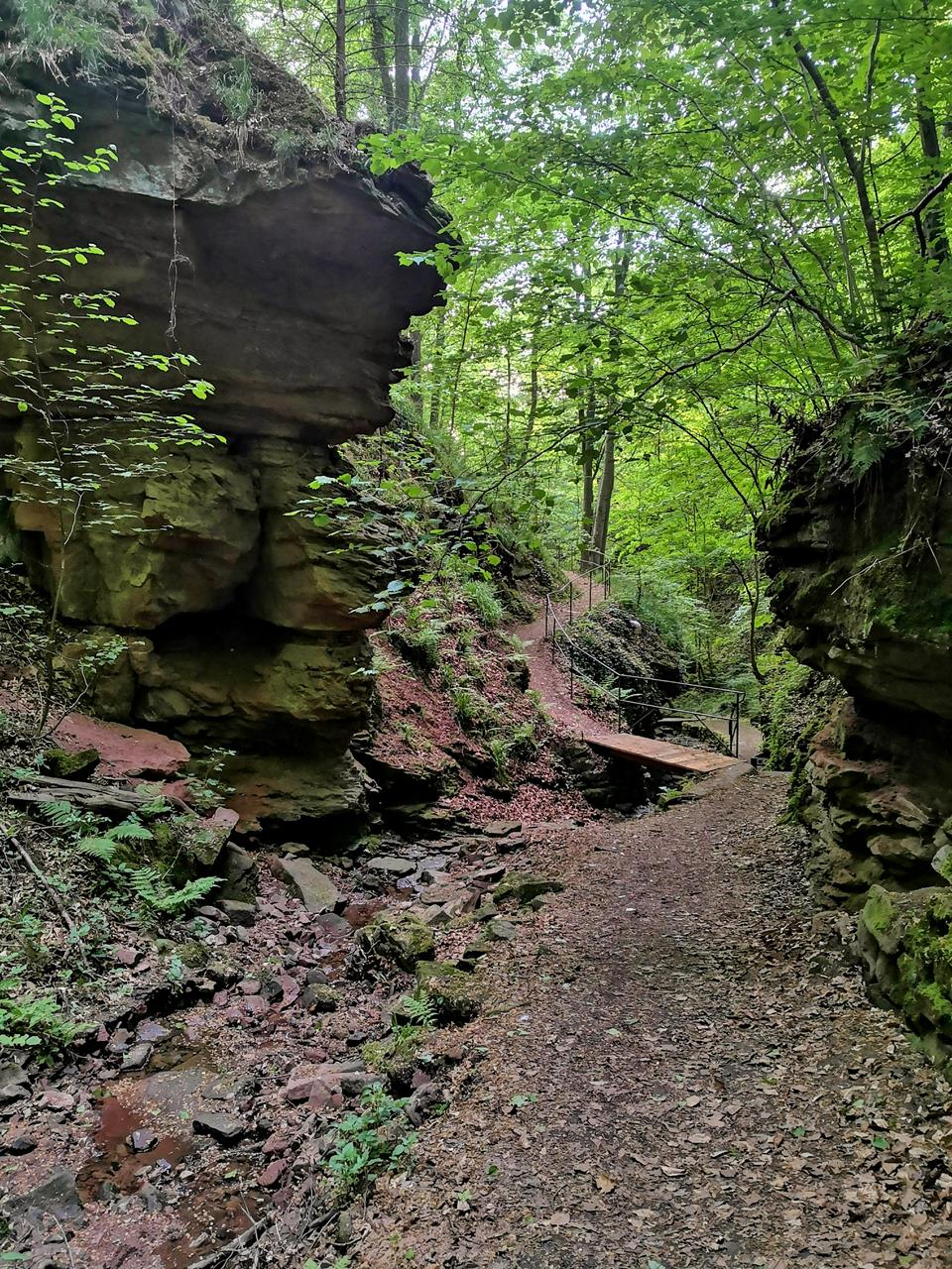 Heute ist die Seltenbachschlucht nicht nur eine Touristenattraktion, sondern auch ein Naturschutzgebiet, in dem Molche und Feuersalamander leben. Die Laubbäume in der Schlucht sind mit Moosen und Efeu bewachsen. Ein uriger Anblick ist das.