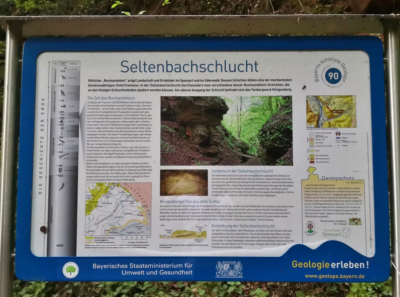 In der Eiszeit vor etwa zwei Millionen Jahren schnitt sich der Main in die flache Landschaft ein. Dadurch gruben sich auch die seitlichen Nebenbäche wie der Seltenbach ein. Enge und steile Schluchten entstanden, fast wie bei einer Klamm.