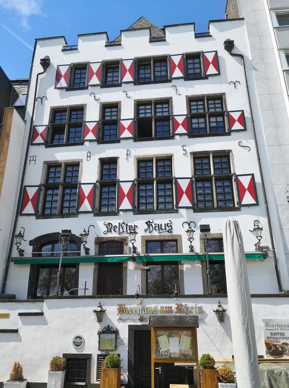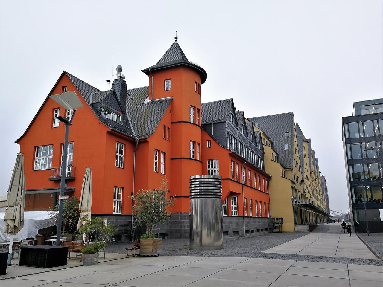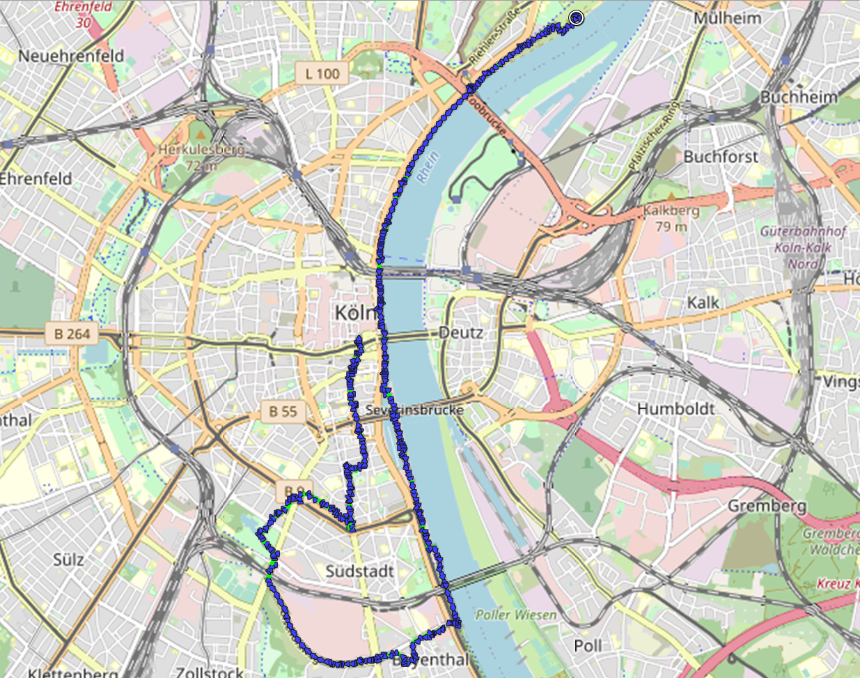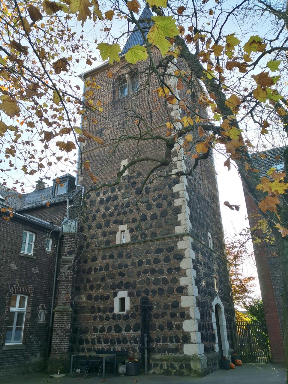 Vom Anleger der Rheinfähre Langel-Hitdorf laufen wir in nördlicher Richtung durch die Rheinauen, bis uns das kleine Hafenbecken von Worringen, in das der Pletsbach mündet, den Weg versperrt. Dahinter sind bereits die Verladeanlagen von Bayer Dormagen zu sehen, an denen mehrere Schiffe vor Anker liegen.Wir drehen eine kurze Runde durch Worringen auf der Suche nach historischen Bauten aus der Zeit, als das Städtchen noch unabhängig war und nicht wie heute zu Köln gehörte. Doch da gibt es nicht viel zu entdecken.