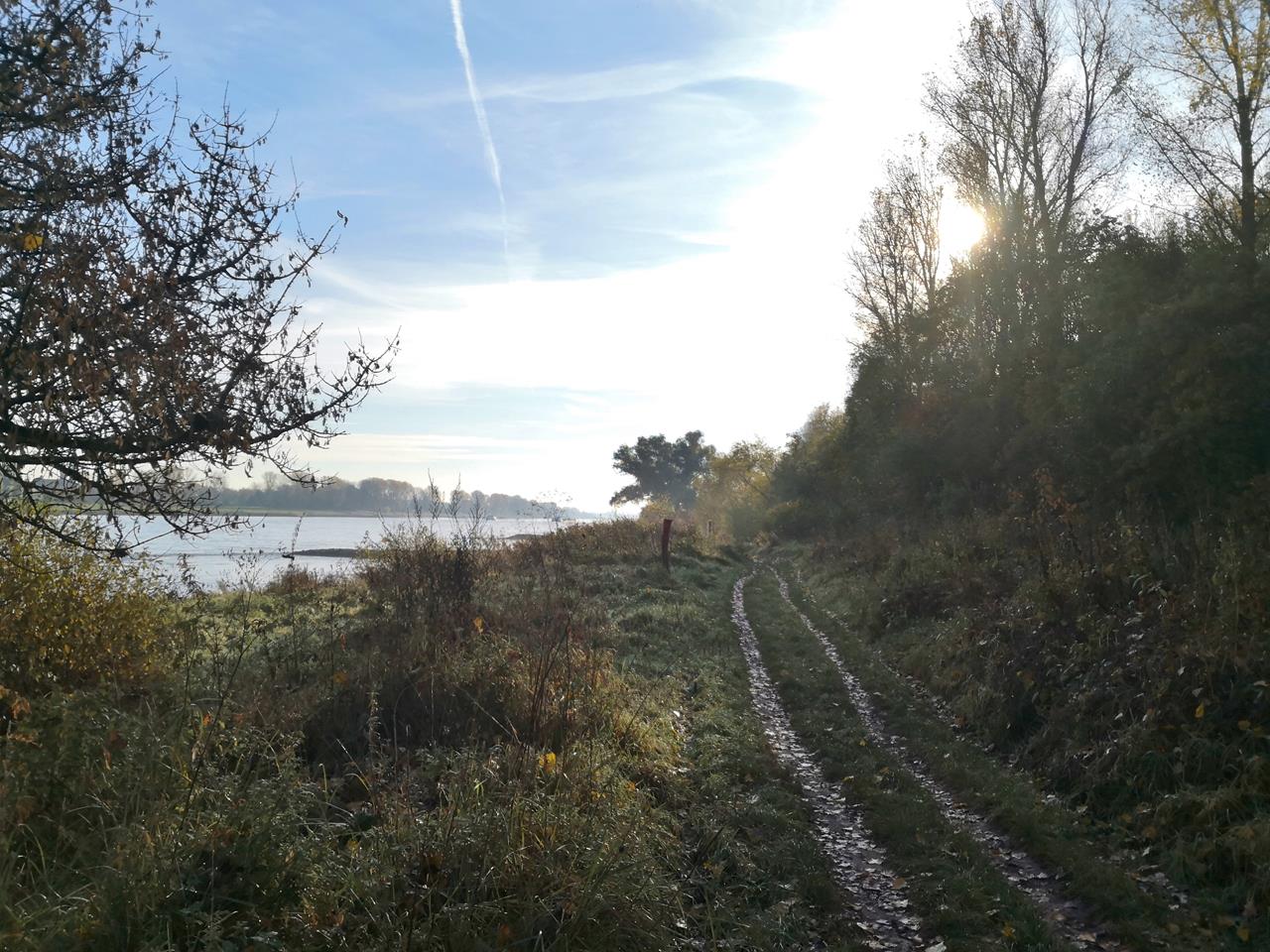 Dann wenden wir uns wieder dem Rhein zu und laufen auf dem Rheindeich zurück in Richtung Langel.
