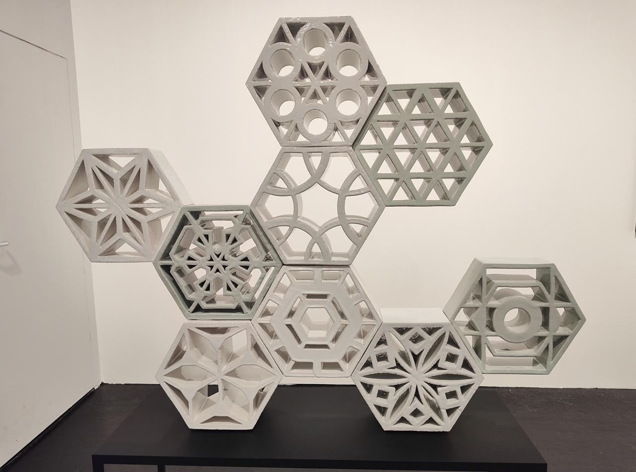 Während in Bottrop vor allem ältere Arbeiten gezeigt werden, lenkt die Kunsthalle Düsseldorf den Blick auf die aktuelle künstlerische Produktion von Sheila Hicks: Großformatige, teils ortsbezogene Installationen und Skulpturen entfalten ihre intensive Kraft im Kontrast zur brutalistischen Architektur der Ausstellungsräume und zeigen auch neueste Material- und Formenexperimente der mittlerweile 90-jährigen: Künstlerin.