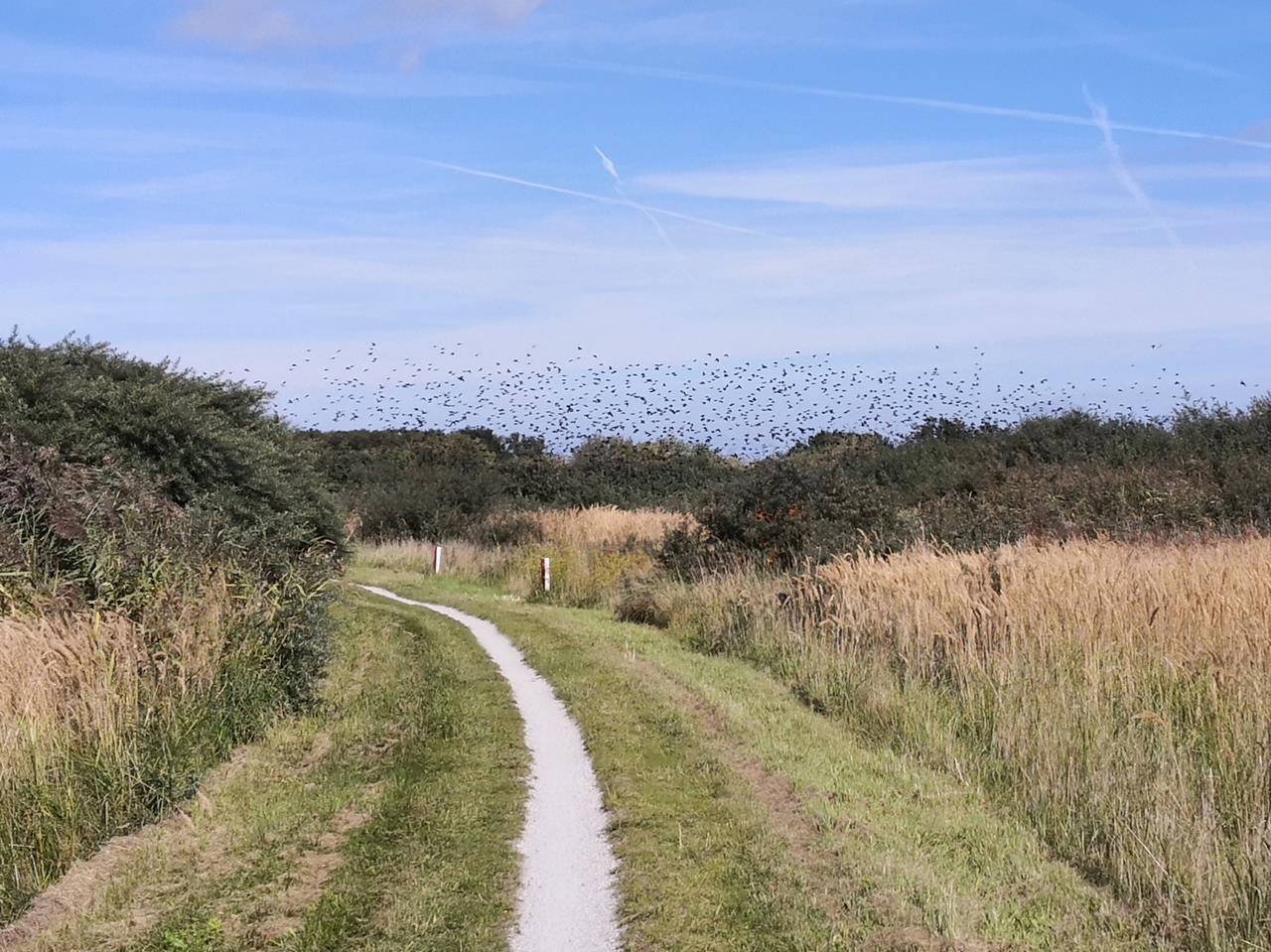 Eine eindrucksvolle Begegnung mit riesigen Schwärmen von Staren haben wir heute im Sperrgebiet Marnewaard gehabt. Der größte offene Truppenübungsplatz der Niederlande darf auf markierten Fahrrad und Wanderwagen passiert werden, wenn das Militär gerade nicht aktiv ist.