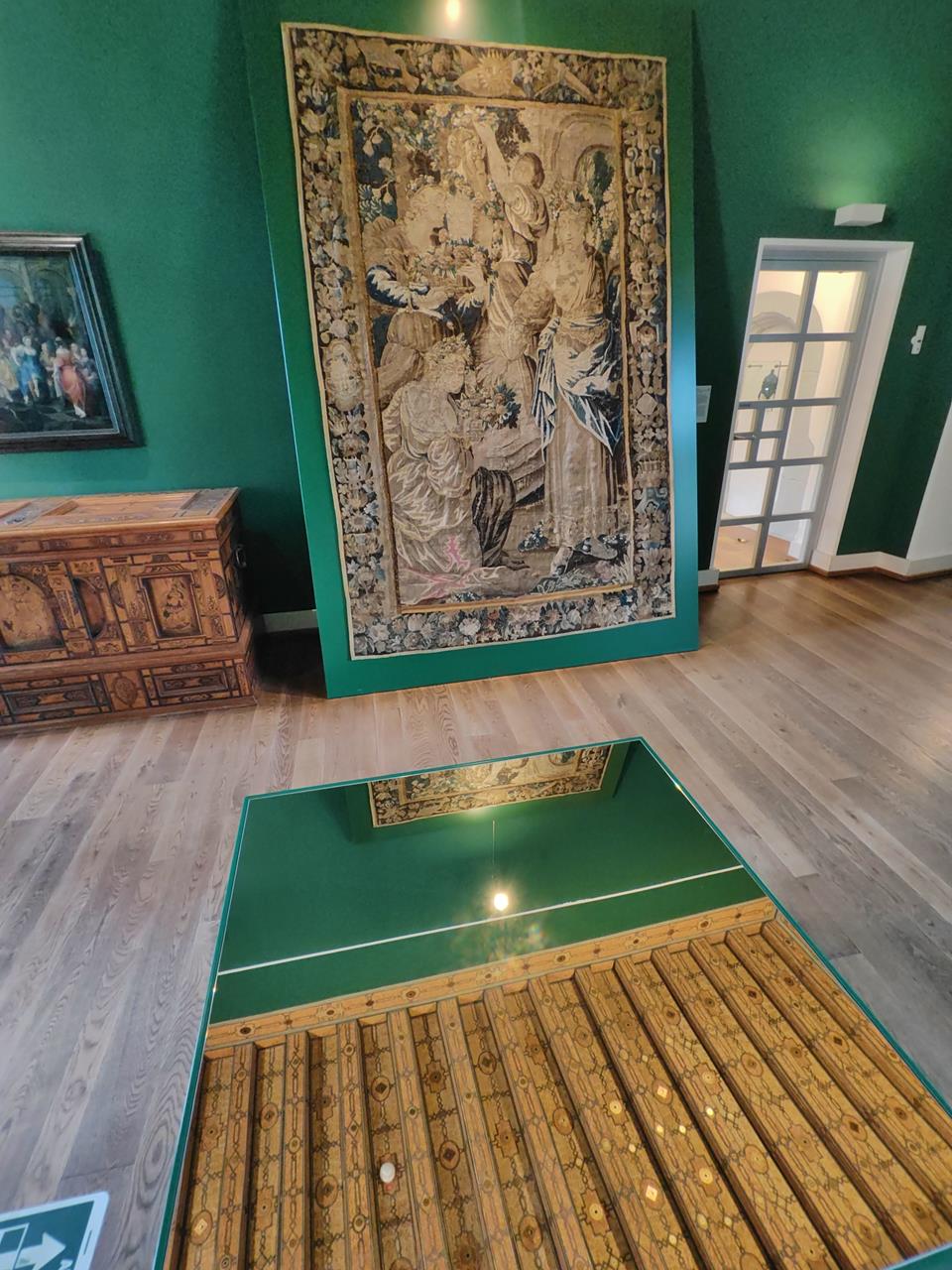 Die Ausstellung präsentiert Gemälde und Objekte aus der Zeit, in der das Schloss seine Blüte erlebte: Alltagsgegenstände, Prunkstücke, Waffen, Tapisserie. Besonders beeindruckend: Die für diese Zeit typische Wunderkammer mit Objekten aus aller Welt, die dem Schlossherrn zur Zierde gereichen sollte.