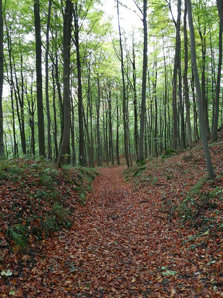 Wir erreichen den Ortsrand von Nettersheim. Am früheren Herz-Jesu-Kloster biegen wir in den Wald ein und laufen ein Stück parallel zur Stadtgrenze. Auf weichen, gut ausgeschilderten Pfaden geht es quer durch den Wald Richtung Zingsheim, das wir nach etwas mehr als zweieinhalb Stunden wieder erreichen.