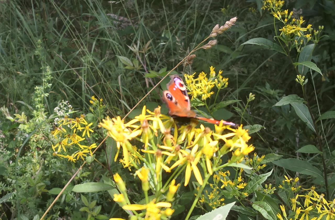 Viele schöne Schmetterling säumen unseren Weg, hier ein Tagpfauenauge
