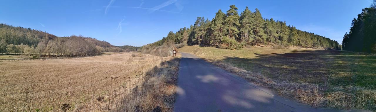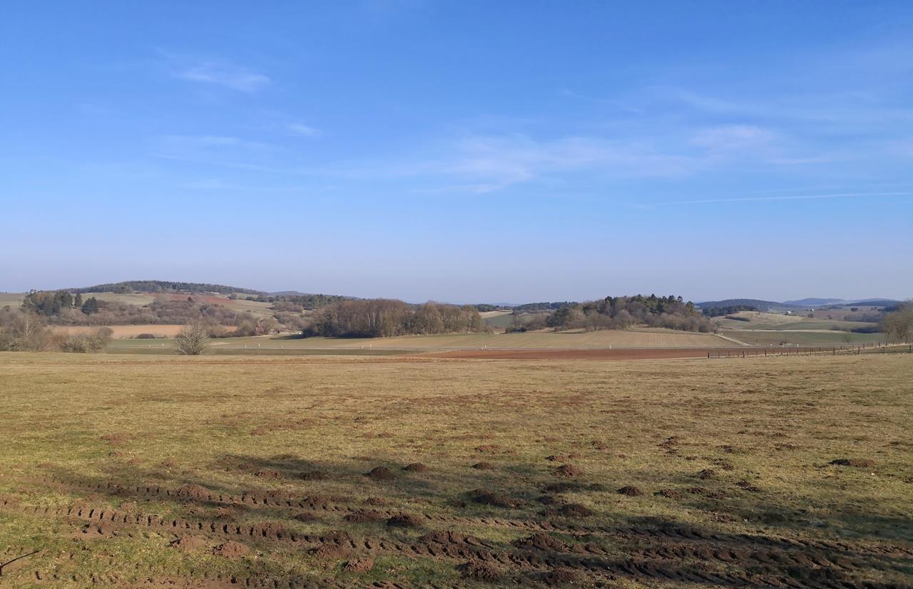 Die Landschaft nördlich unseres Startpunkts in Zingsheim ist geprägt von sanften Hügeln und einem hübschen Mix aus Feldern und Waldabschnitten.