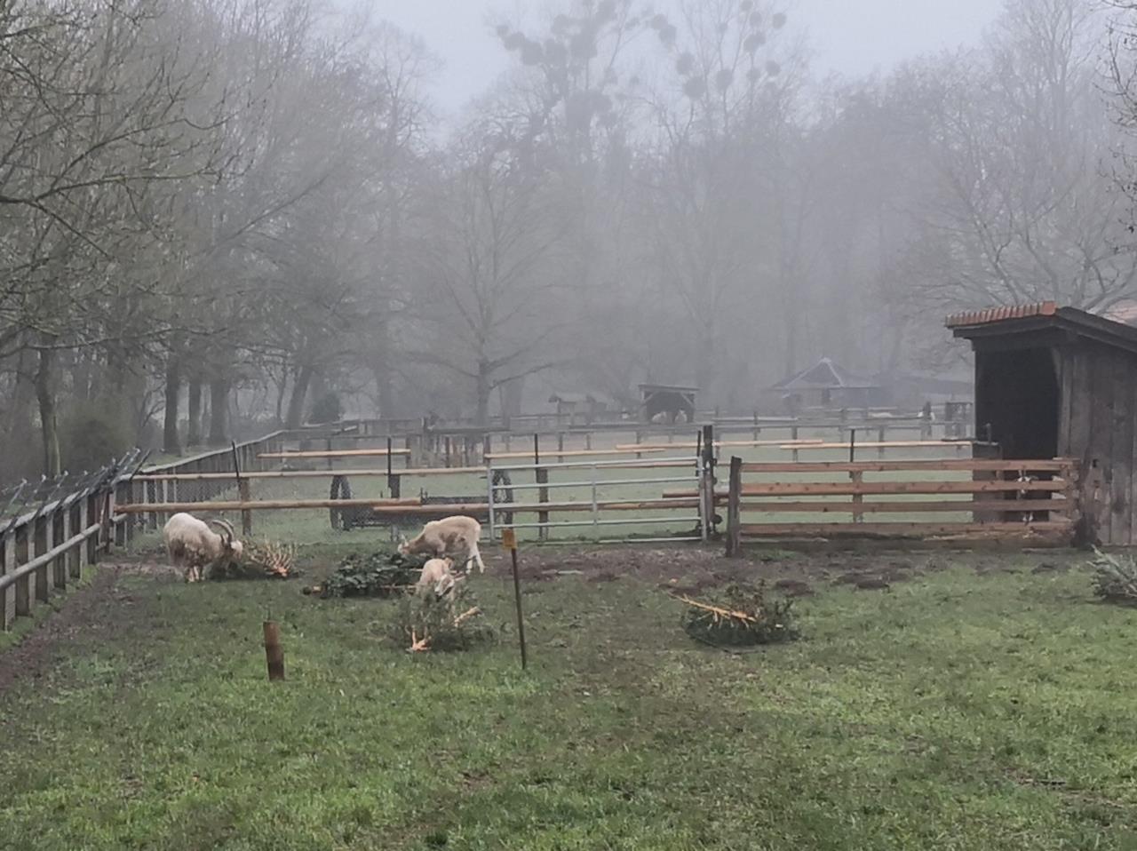 Die Ziegen machen sich über die ausgedienten Weihnachtsbäume her