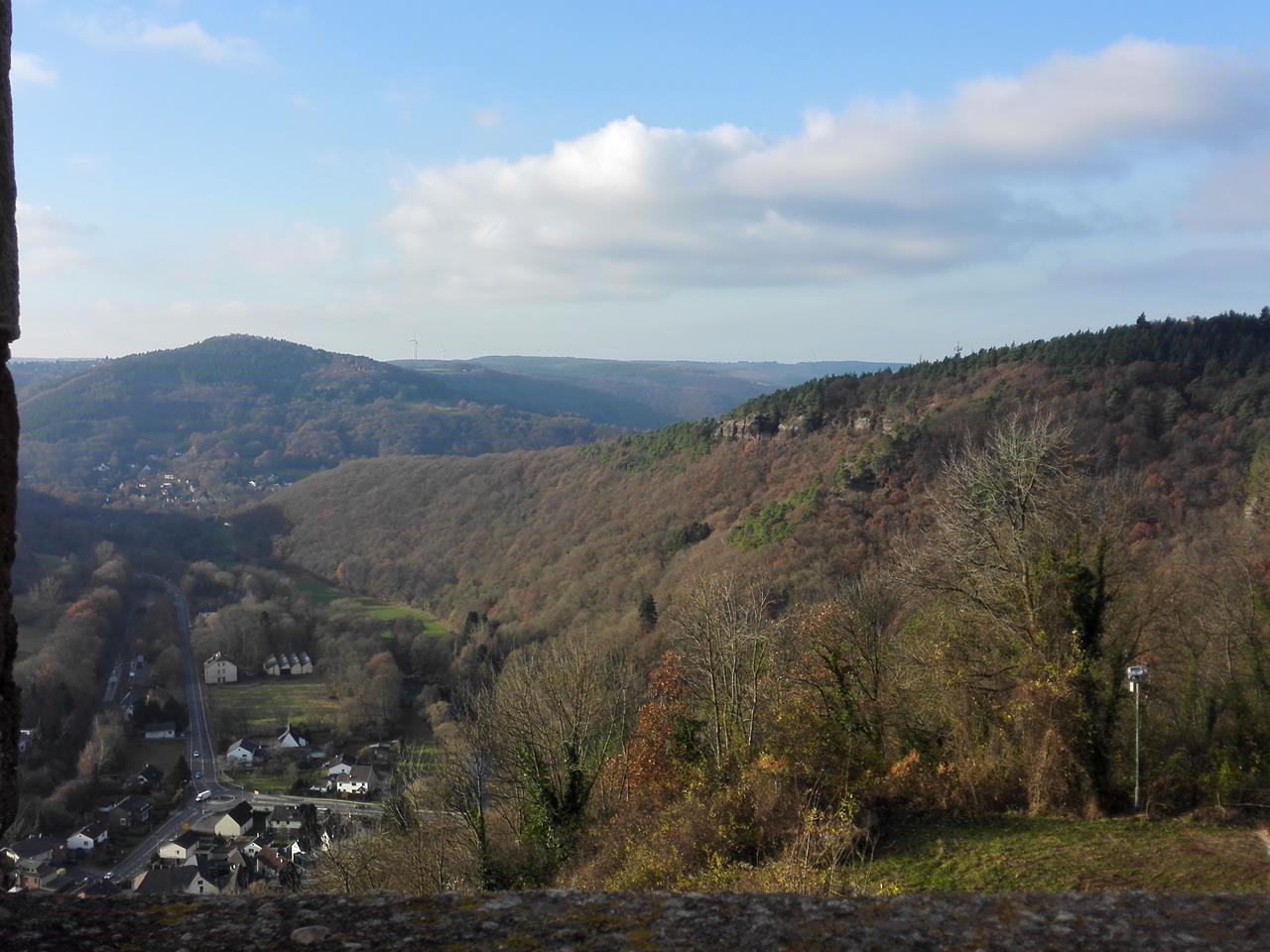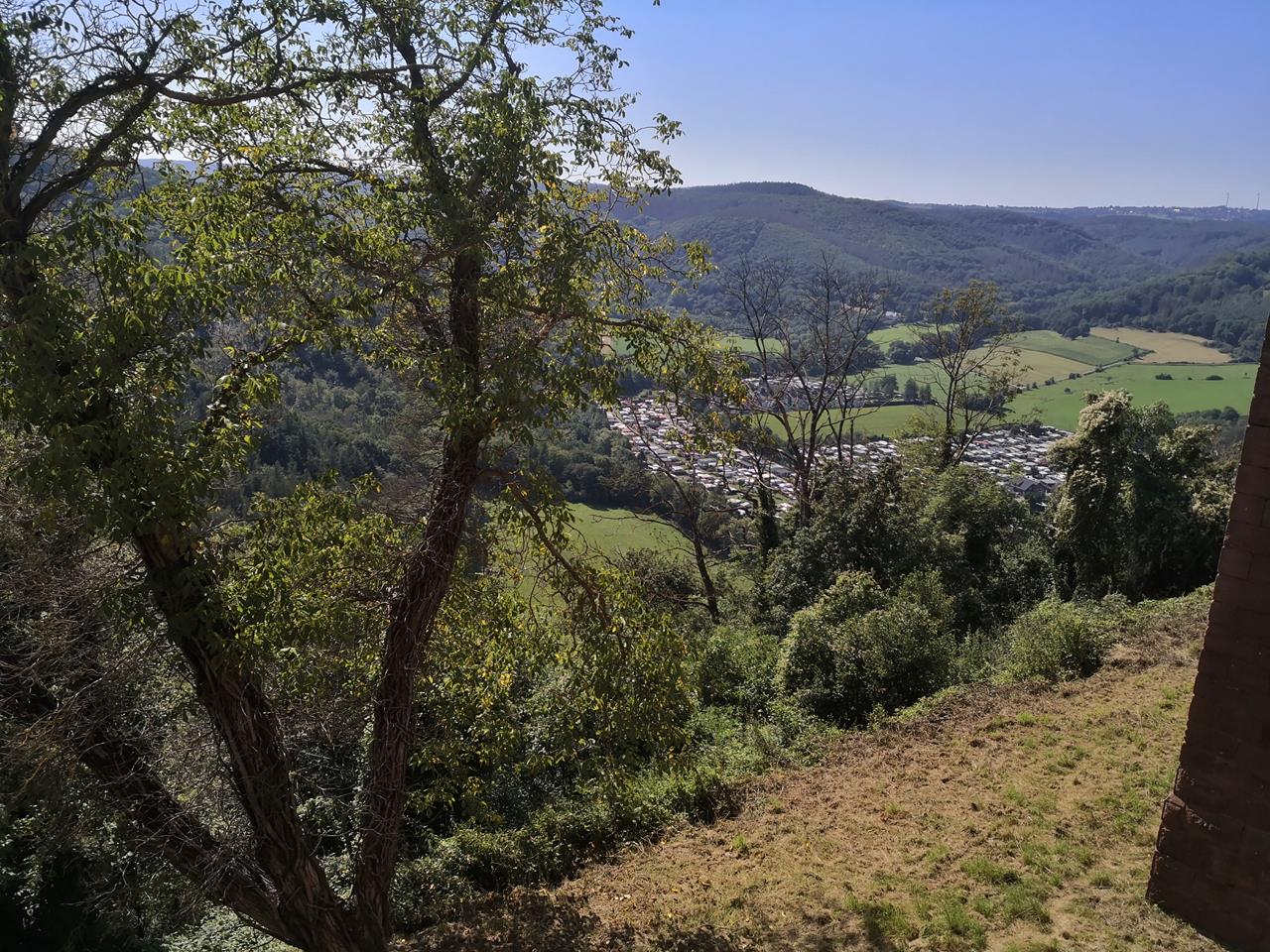 Blick vom Waldrand über das Rurtal zur Burg Nideggen