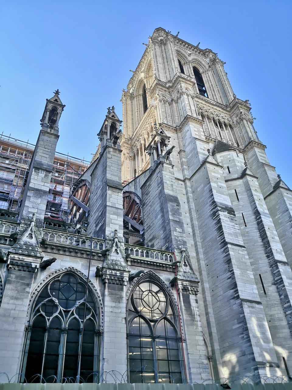 Seitlicher Blick auf Notre Dame mit noch offen liegen Holzstrukturen