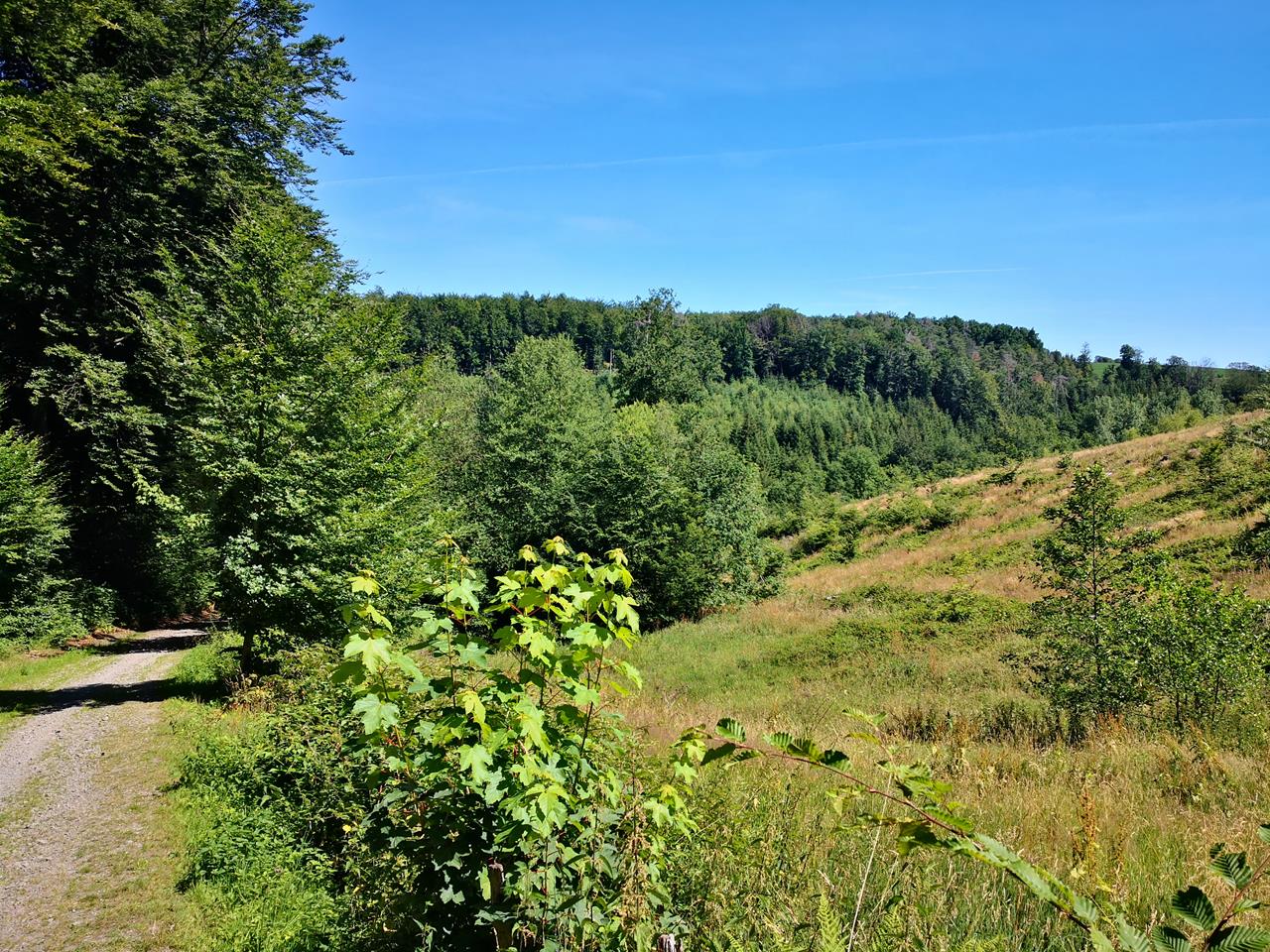 Ich bin froh, dass ich bereits um 9:00 in Radevormwald gestartet bin, denn es wird heiß heute und die vielen freien Flächen lassen die Sonne durchscheinen.