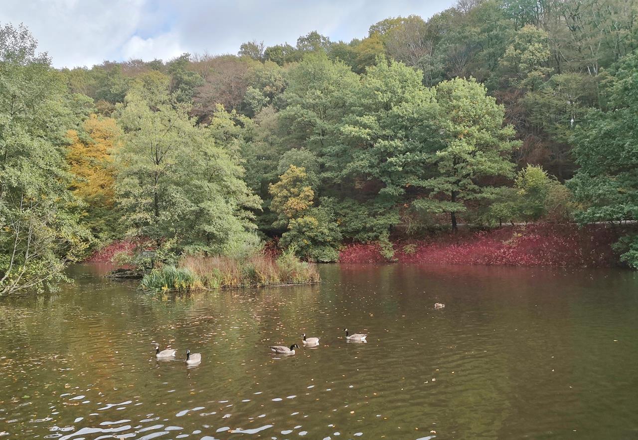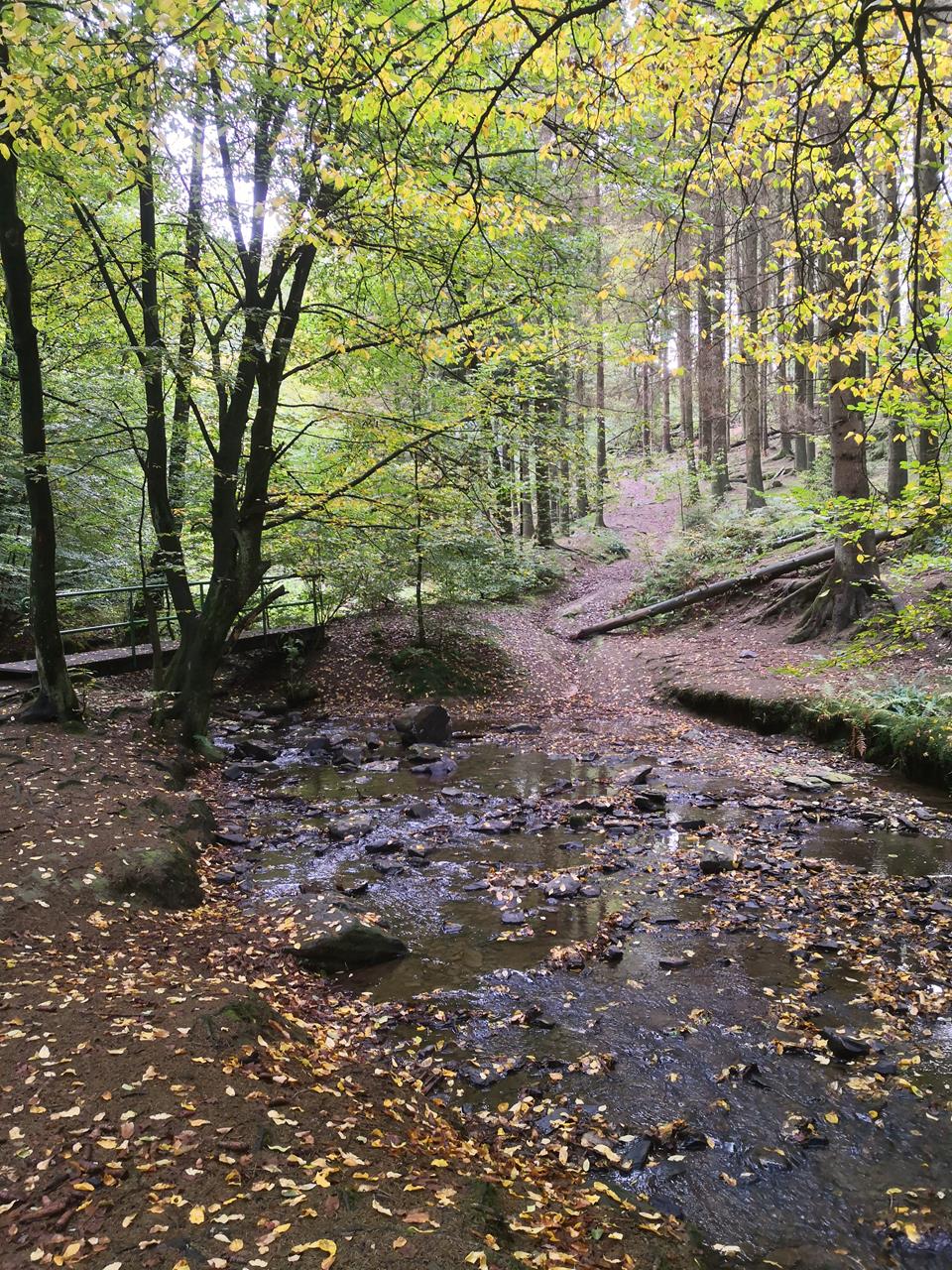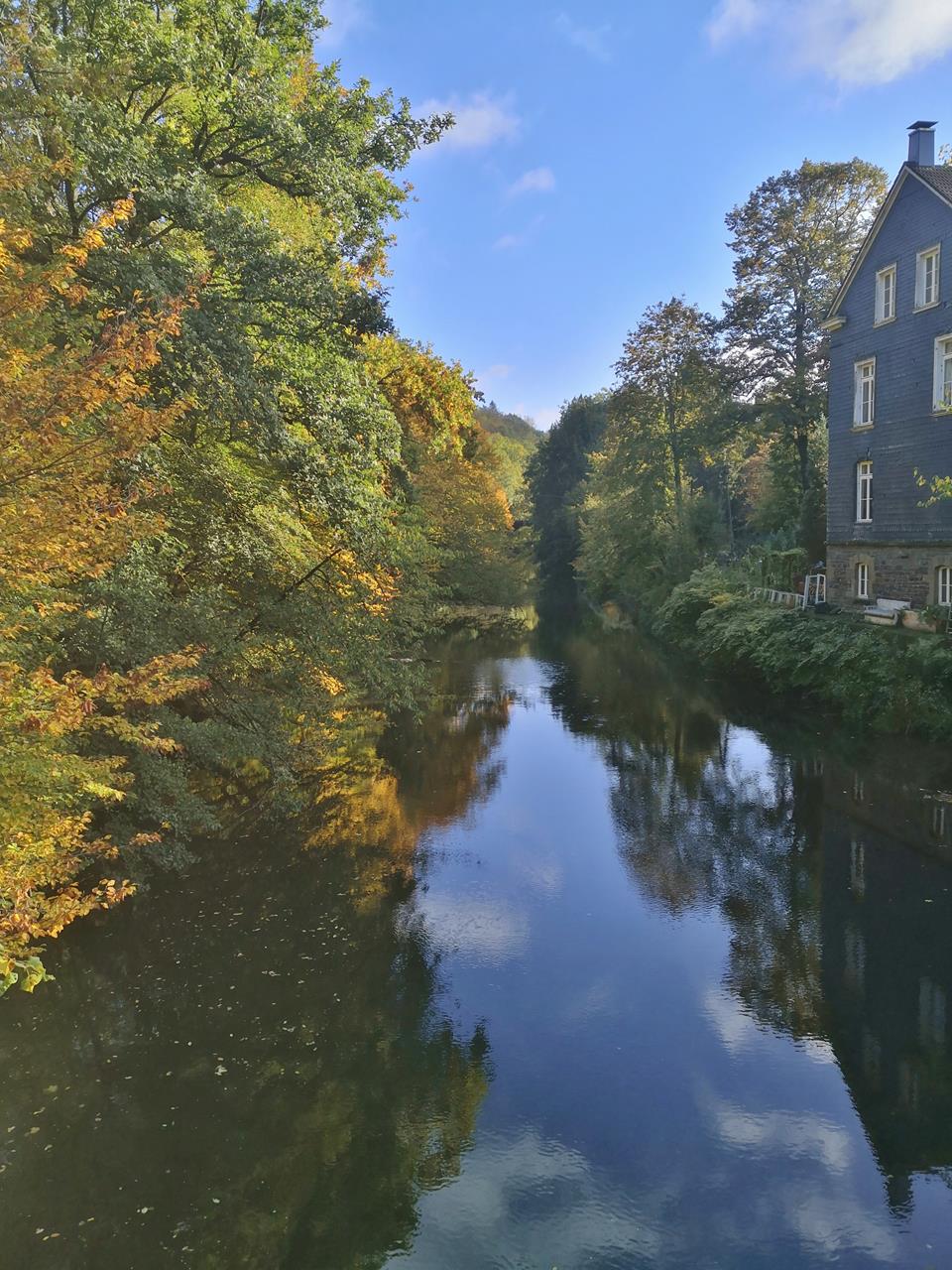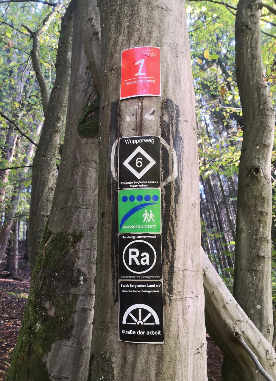 Meine erste richtige Herbstwanderung in diesem Jahr, mit buntem Laub und lichtdurchfluteten Bäumen, hat mich heute von der Wuppertalsperre nach Radevormwald und zurück geführt. Mit Doxi bin ich den 21 km langen Wald-Wasser-Wolle-Weg gelaufen, der in Teilen parallel zum Tuchmacherweg verläuft, dem „Bergischen Streifzug“ mit der Nummer 1.