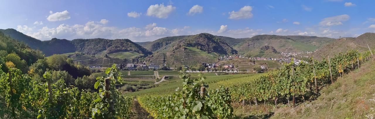 Panoramabild aus den Weinbergen südlich der Ahr bei Mayschoß
