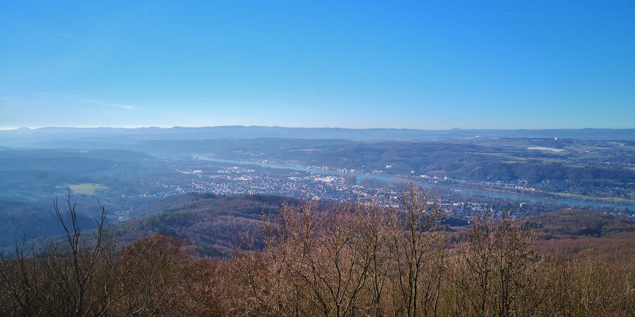 Rechts vom Gipfel erscheint Bonn mit der markanten Shilouette des Telekom-Towers