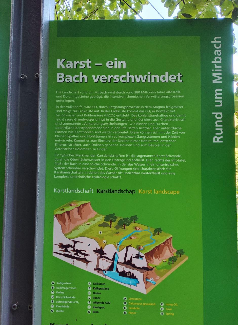 Vor elf Jahren war ich zum ersten Mal in der Eifel-Toskana bei Ripsdorf, Gemeinde Blankenheim, um mit Jutta und der noch ganz jungen Doxi durch das schöne Lampertstal zu wandern. Eine Dekade später ist Jutta längst auf anderen amourösen Wegen unterwegs, meine liebe Doxi kann nicht mehr so lange Strecken laufen, aber ich bin heute wieder da: nach 70 Minuten und rund 110 Kilometern Autofahrt.Früh am Morgen starte ich eine 17 km-Runde von Ripsdorf hinunter ins Lampertstal, wo Bäche mitten in der Landschaft verschwinden, weil sie das ausgehöhlte Kalkgestein im Untergrund regelrecht verschluckt. Die Luft ist noch frisch, aber es verspricht ein wunderbarer Wandertag zu werden, mit Sonne und weißen Wolken vor blauem Grund.
