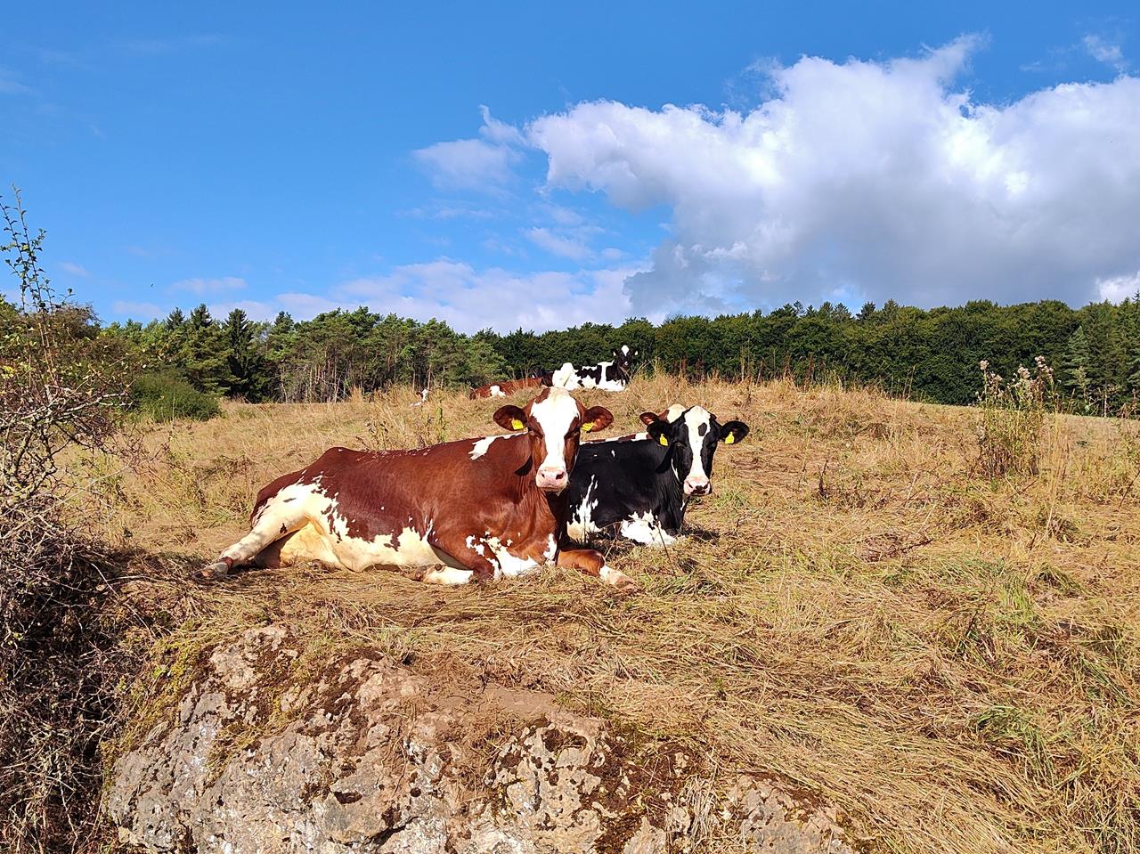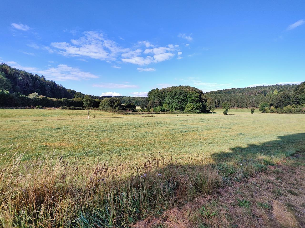Ein Hauch von Toskana liegt über der Landschaft. Nicht zuletzt wegen der vielen an Zypressen erinnernden Wacholderbäume auf den nur vereinzelt bewachsenen Kalk-Magerwiesen der Region. Mit schönen Ausblicken steige ich entlang des Waldrandes nach Waldorf hinab. Anschließend geht es über wenig begangene Wege parallel zum Bonnesbach ins Eichholzbachtal.