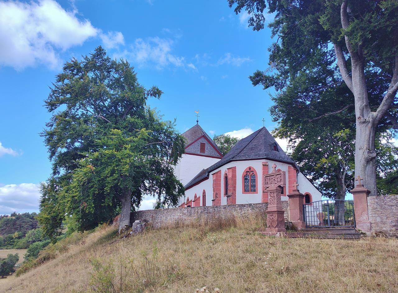 Über ein Teilstück des Eifelsteigs führt mich der Weg zunächst nach Mirbach zur wunderschönen Erlöserkirche im neuromanischen Stil, erbaut 1902. Dort machen auch die Pilger aus meinem Heimatdorf regelmäßig Halt, wenn sie auf ihrem Vier-Tages-Marsch von Büttgen nach Trier sind.