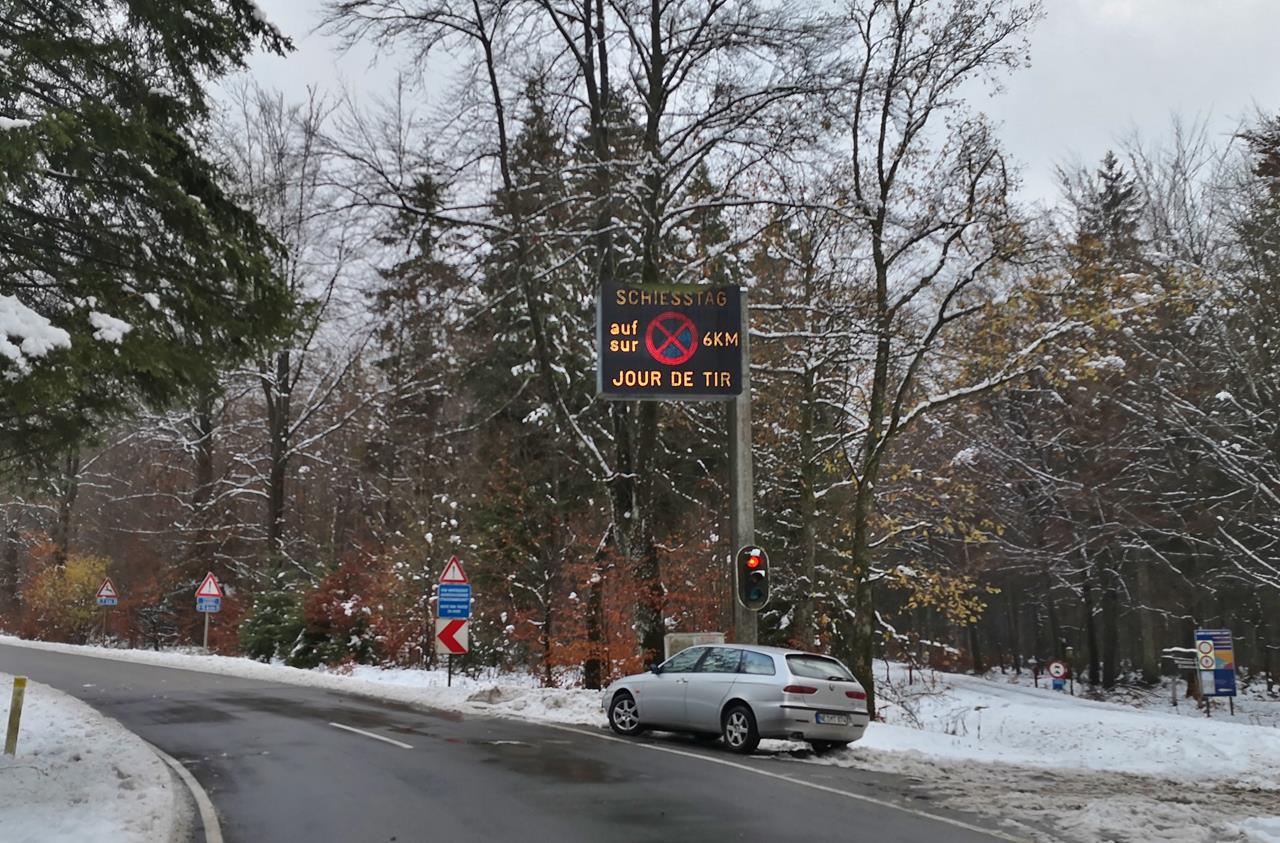 Keine Weiterfahrt möglich. Hier wird heute scharf geschossen. Man hört es noch aus mehreren Kilometern Entfernung.
