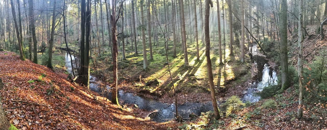 Herrlich, wie sich der Wald im Bachlauf spiegelt
