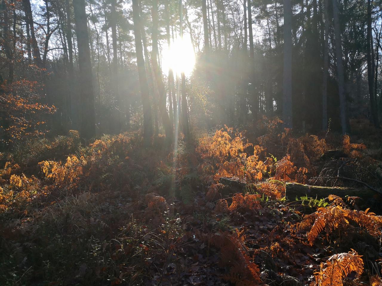 Kurz vor Roetgen drehen wir um und laufen durch den Wald zurück nach Schmithof. Knapp zehn Kilometer sind wir auf dieser Tour bei einstelligen Plusgraden aber herrlichem Sonnenschein unterwegs.