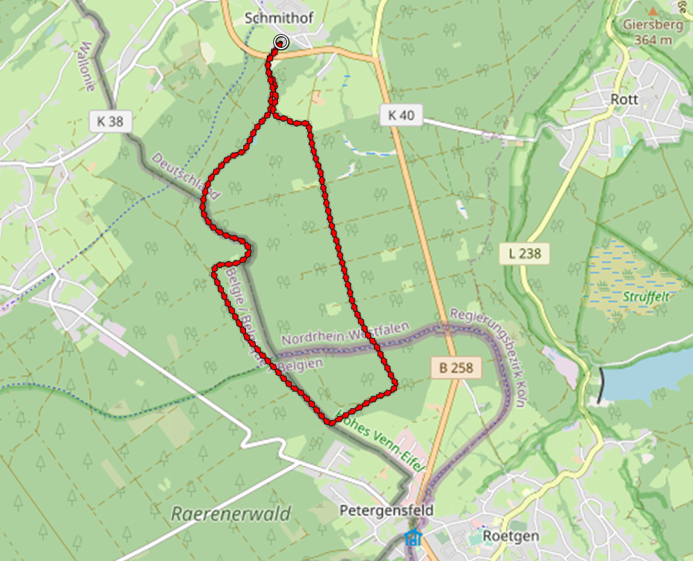 Zunächst geht es auf bekannten Wegen links und rechts der Inde durch den Wald. Kurz hinter der belgischen Grenze verlasse ich die Talsohle und laufe Richtung Roetgen.