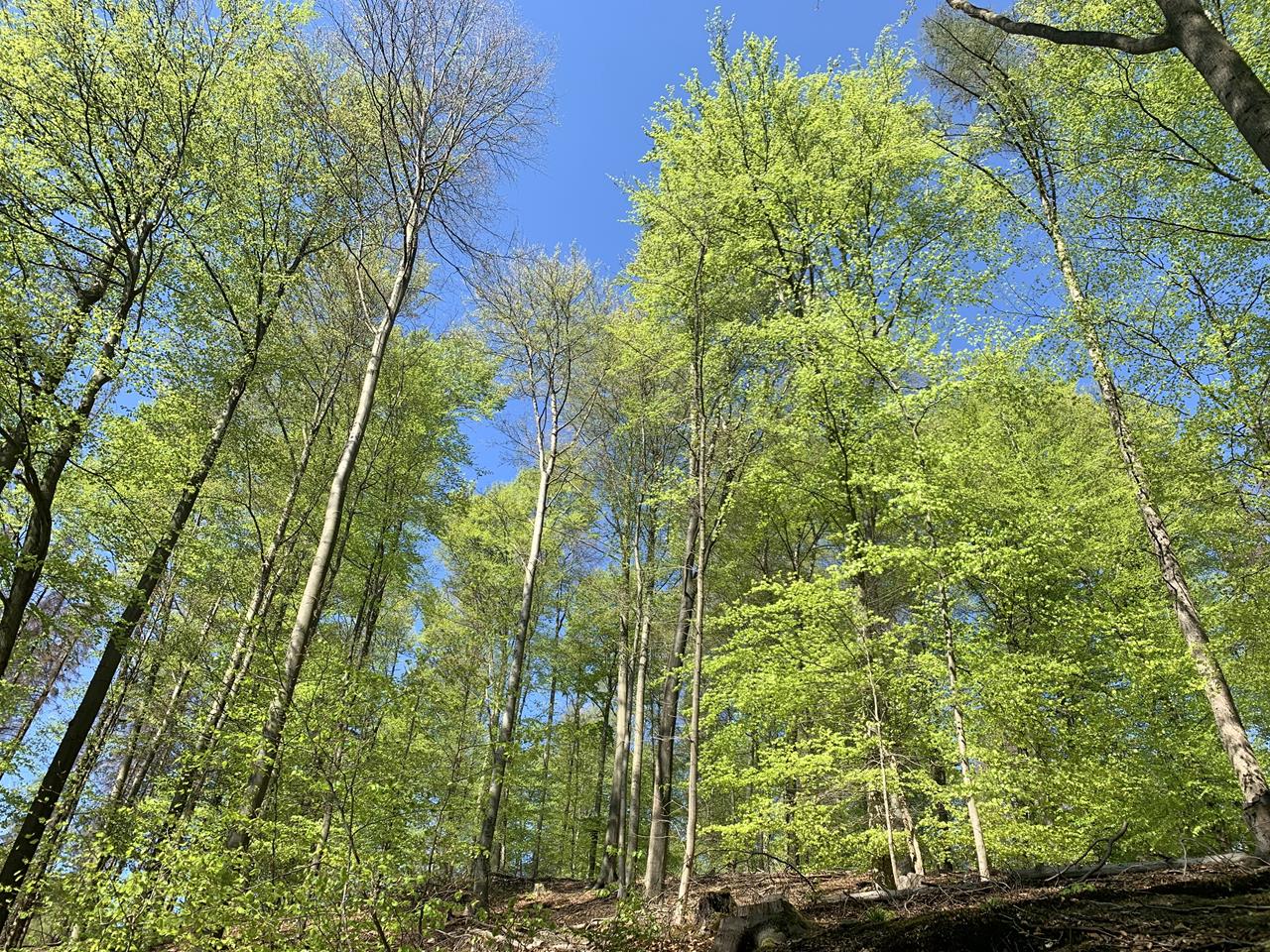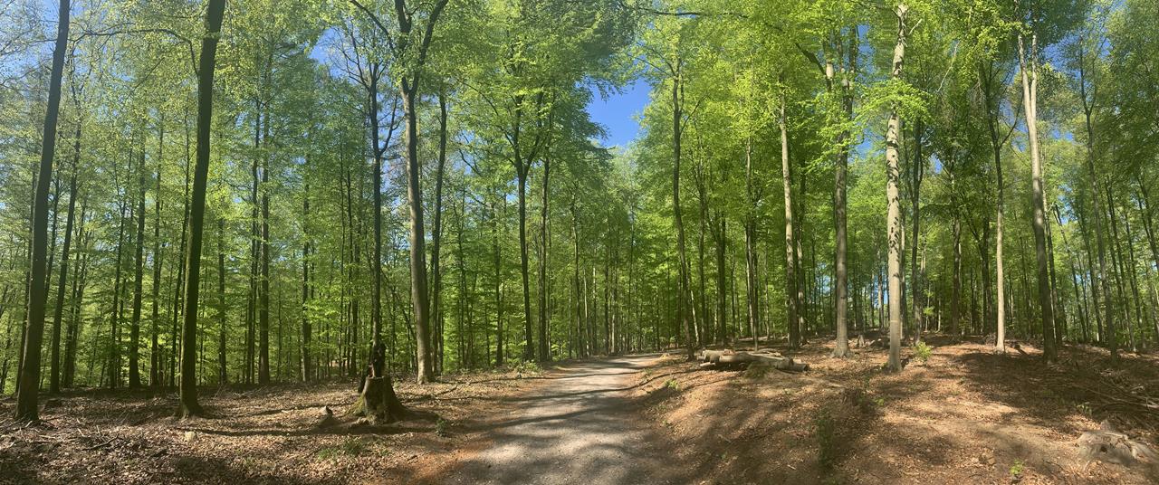 Panoramabild von Doxi im frisch ergrünten Buchenwald