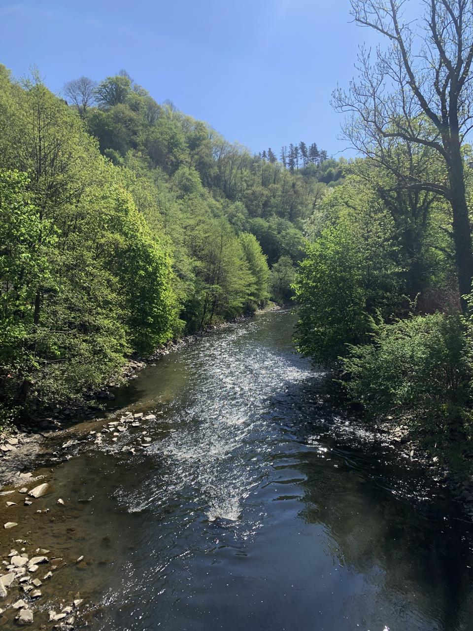 Blick auf die Wupper von unserem Startpunkt an der Brücke in Glüder