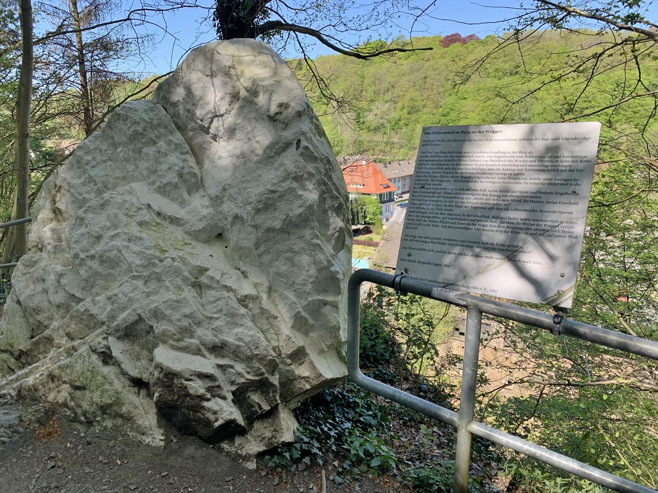 Der weiße Stein, an dem der Sage nach ein Ritter mit Pferd als Gottesurteil in den Fluss gestürzt wurde – und überlebte
