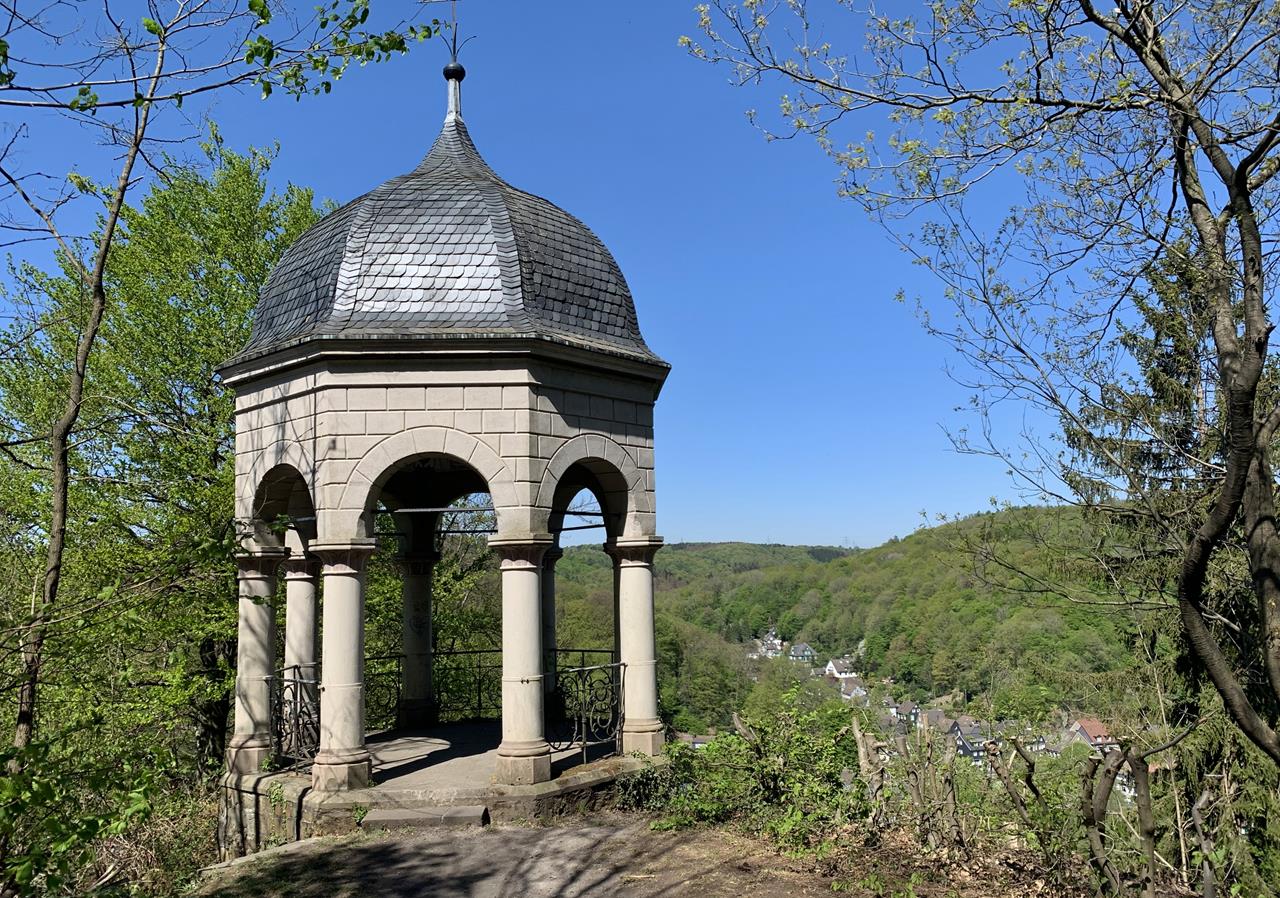 Panoramabild vom Diederichs-Tempel mit Blick ins Tal der Wupper bei bei Müngsten