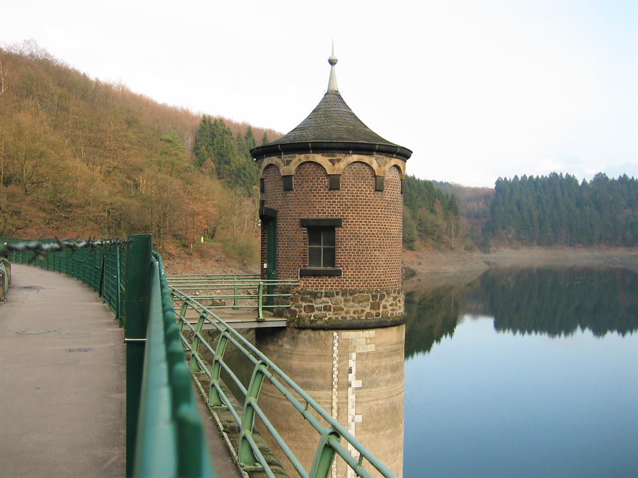 Wir parken am Campingplatz Glüder in unmittelbarer Nähe der Wupper und laufen nach wenigen Schritten in den Wald hinein, der gerade beginnt, sich herbstlich einzufärben. Mit jedem Wanderkilometer geht es ein Stück weiter hinauf auf die Höhen über dem Sengbachtal.Bald erreichen wir die Staumauer der 1903 errichteten Sengbachtalsperre, die zu den ältesten Trinkwasserspeichern in Deutschland gehört. Der zwischen Wäldern gelegene Wasserspeicher unweit der Wupper versorgt die Bewohner der Stadt Solingen mit Trinkwasser.