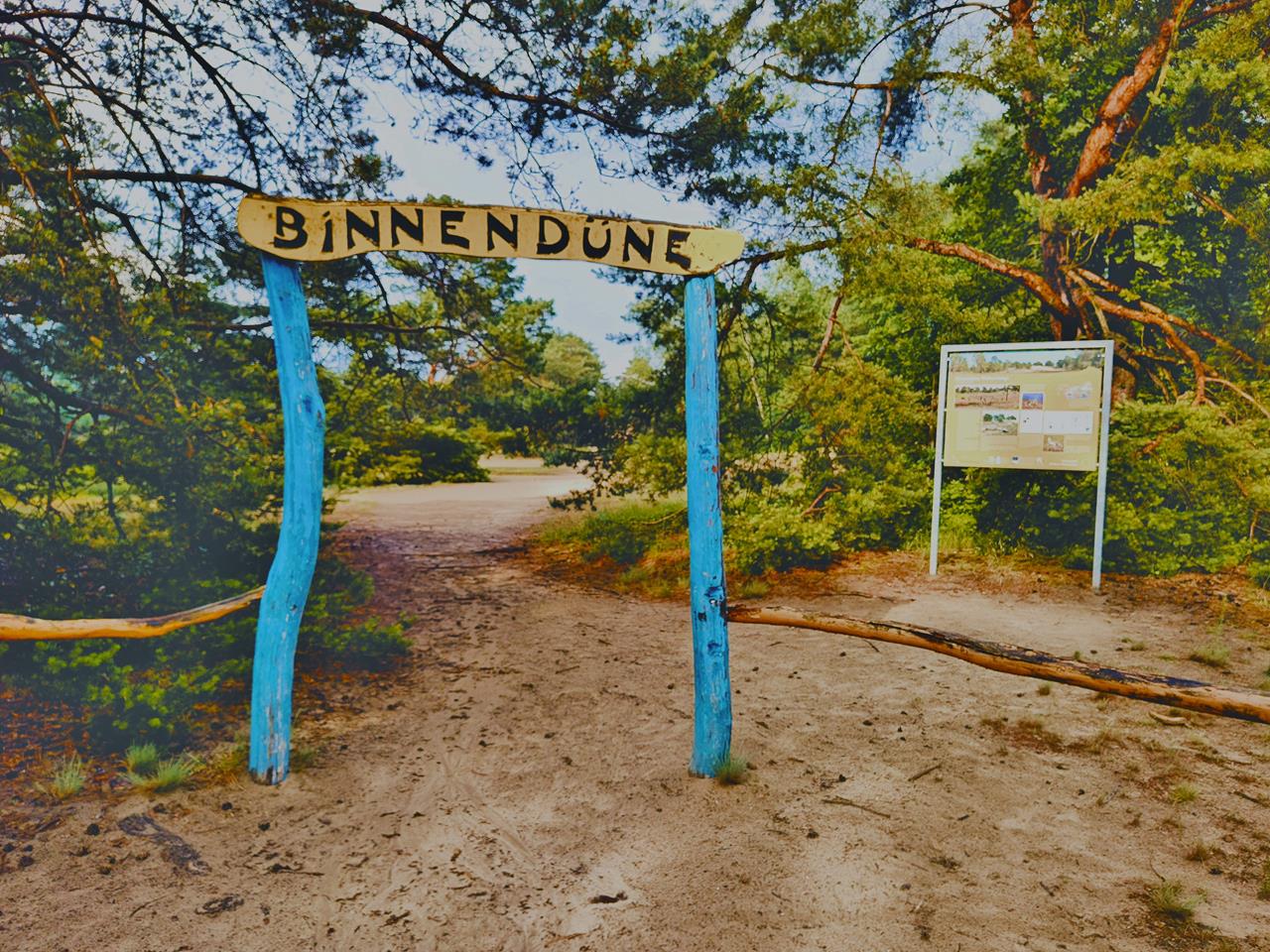 Das Maskottchen des umliegenden Naturschutzgebiets ist der Ameisenlöwe, eine von zahlreichen Insektenarten, die hier zu Hause sind. Genau wie die Seen ist die Düne ein Relikt der letzten Eiszeiten und zeigt exemplarisch, wie es damals in dieser Region ausgesehen hat.
