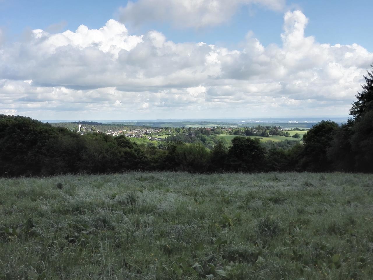 Auf den Kammlagen bietet sich dort ein herrlicher Fernblick auf das mehr als 30 km entfernte Köln. Dahinter sind die ersten Erhebungen des Bergischen Landes auf der anderen Rheinseite zu erkennen.