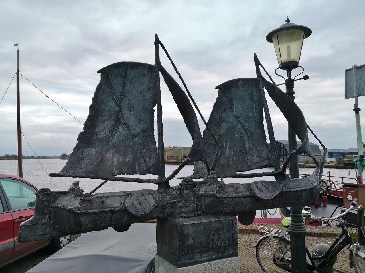 Denkmal für die Tjalk genannten Flachbodenschiffe, die typisch für die Region sind