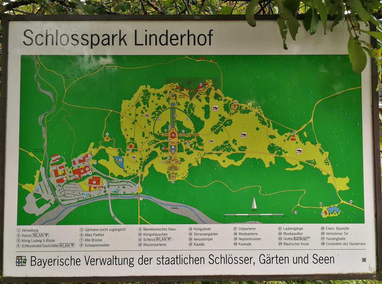 Der Weg führt immer am linken Ufer der Partnach entlang, wenn man stromaufwärts blickt. Er wurde teilweise als Tunnel in den Fels gesprengt und ist selten mehr als 1,8 Meter hoch. An vielen Stellen ist es darin richtig dunkel. Daneben rauscht die Partnach unter unglaublichem Getöse talwärts.