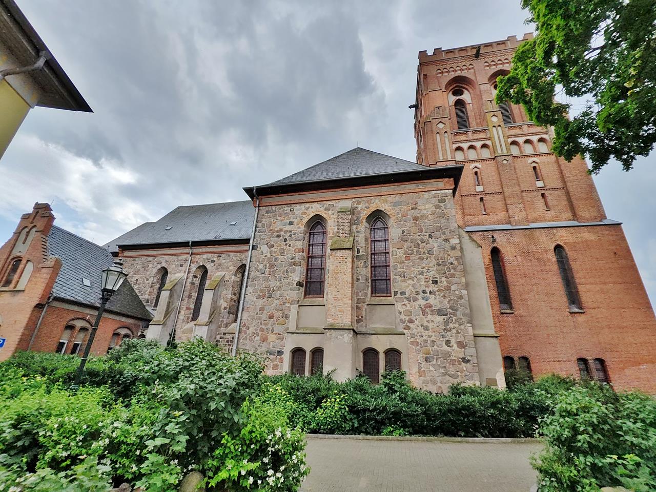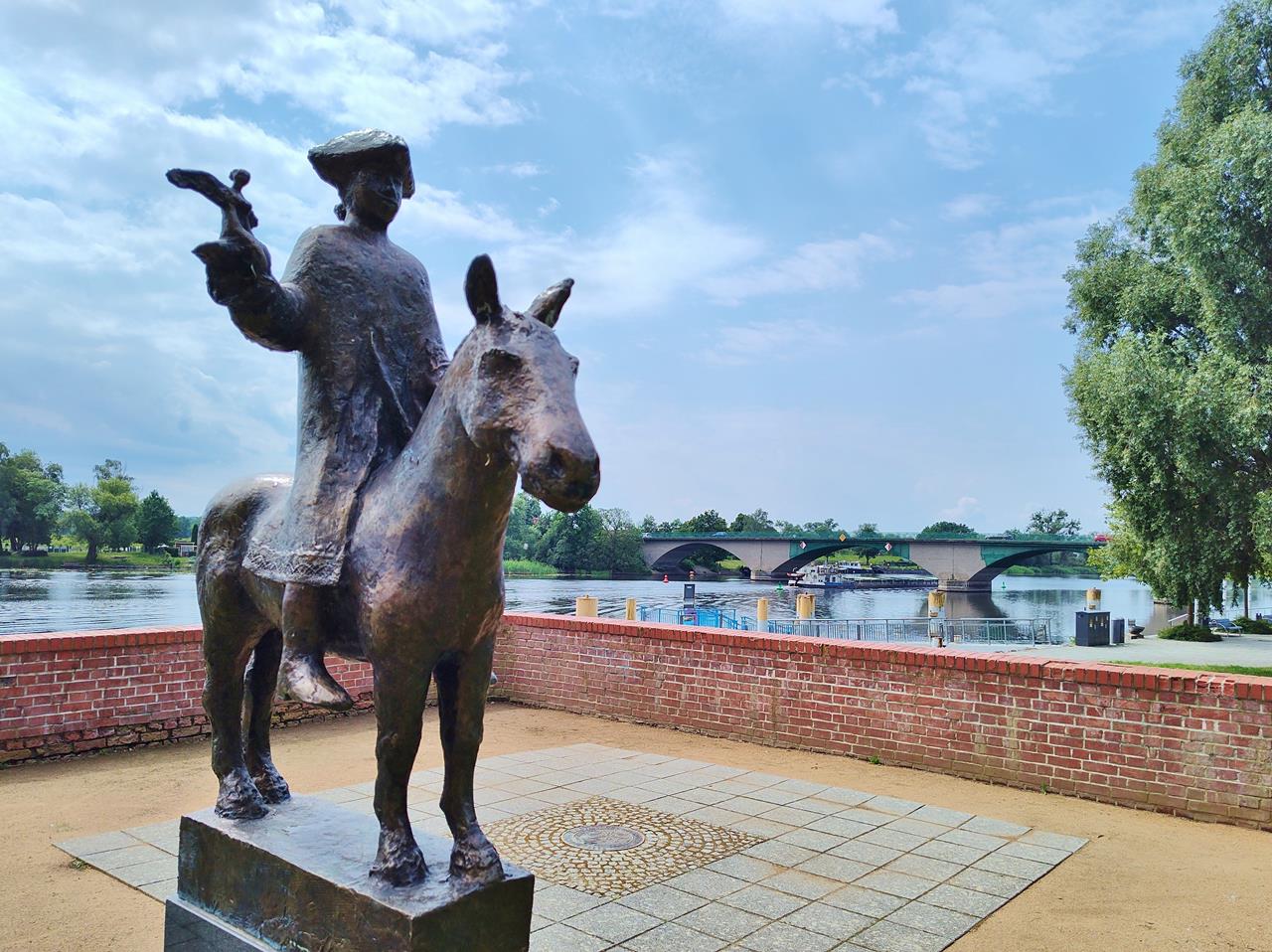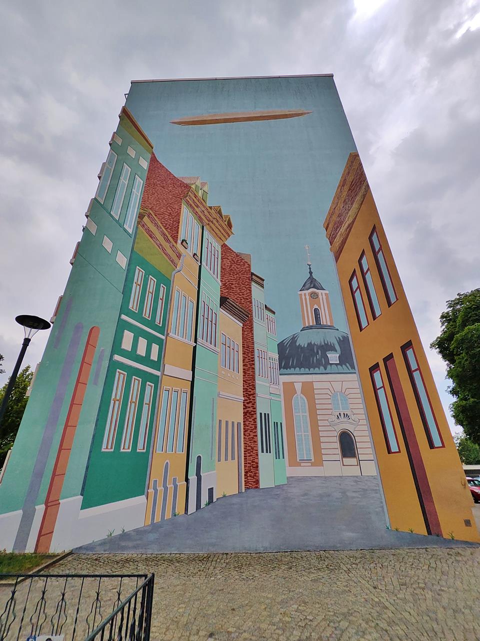 Mit Doxi laufe ich erst ein wenig durch die Auenlandschaft und schaue mit dann die Altstadt an. Zwischen einigen wenigen gut erhaltenen bzw. wiederrichten Vorkriegsbauten erheben sich hohe Plattenbauten aus der DDR-Zeit. Krass sieht das aus – ein ziemlicher städtebaulicher Kontrast.