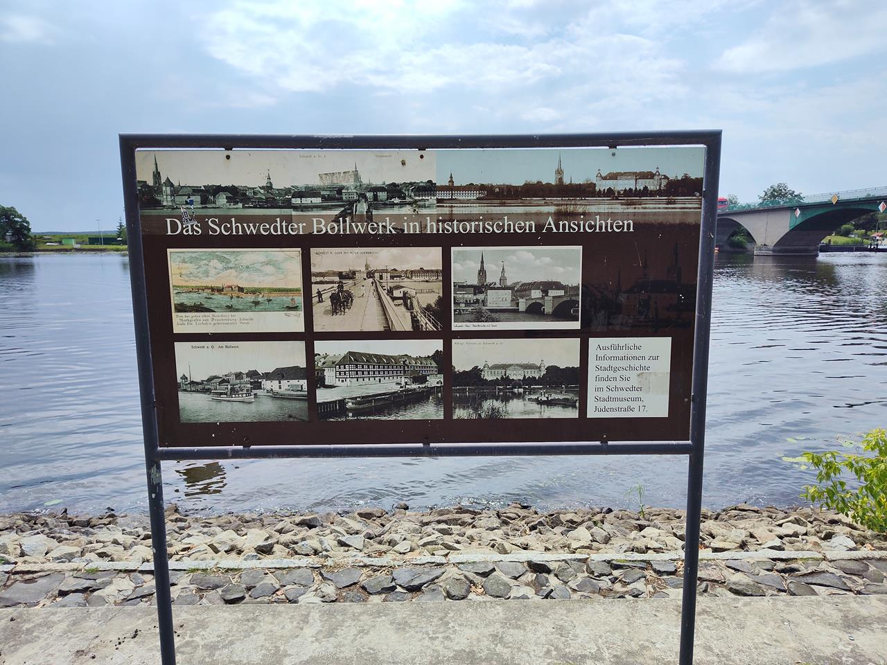 Nach einer wunderbar ruhigen Nacht am Stettiner Haff fahren wir früh am Morgen weiter nach Ueckermünde. Hier mündet der Fluss, der weiter südlich noch Ucker heißt, und der Region Uckermark ihren Namen gab, in das Stettiner Haff.