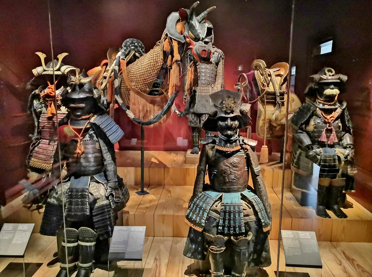 In einem Nebenraum werden japanische Uniformen der Samurai präsentiert