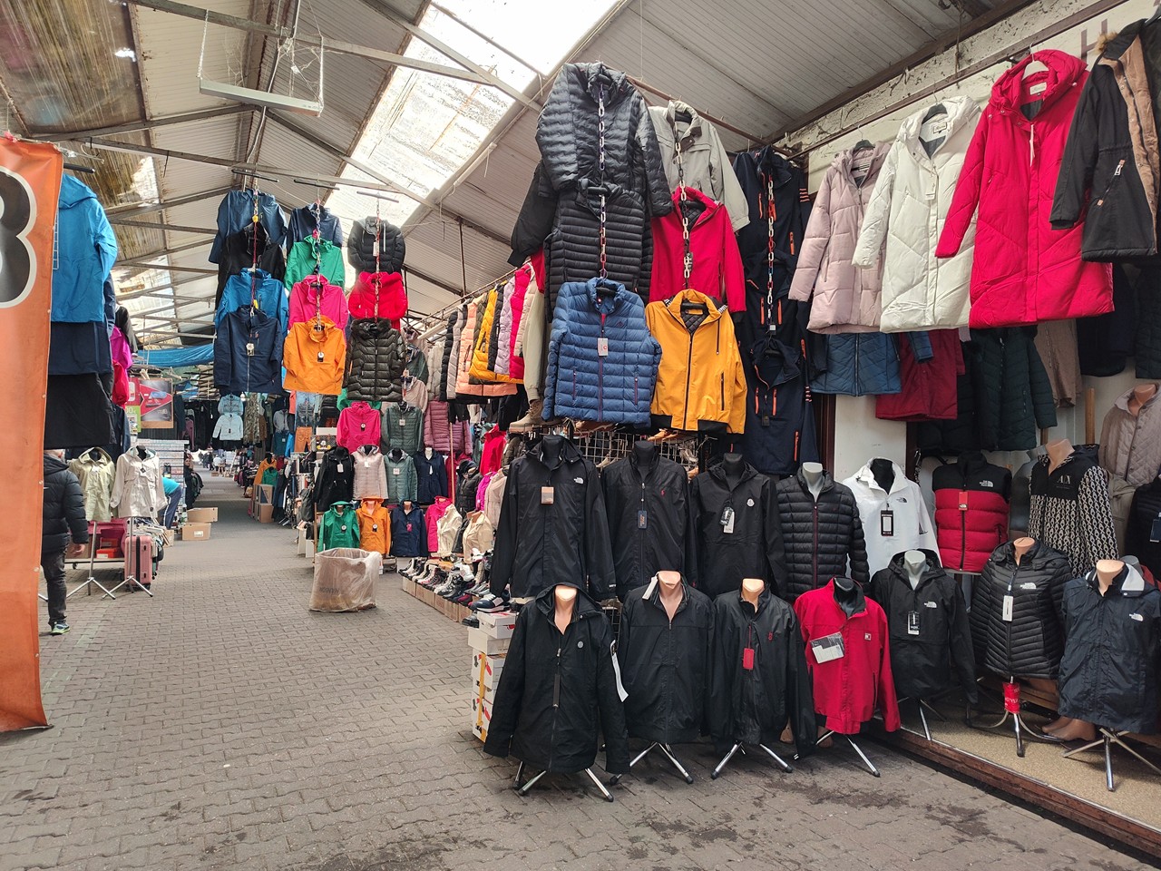 In starkem Kontrast dazu steht der Polenmarkt mit zahllosen Verkaufsständen unter dem Dach einer klapprigen Wellblechhalle, keine 30 Meter vom Parkrand auf polnischer Seite entfernt. Als ich mit Doxi einen kurzen Abstecher auf den Markt unternehme, öffnen gerade die ersten Stände. Ich könnte der erste Kunde des Tages sein. „Jacke kaufen?“, „Knoblauch-Gurken kaufen?“, „Zigaretten kaufen?“ hallt es mir entgegen. Ich winke ab.