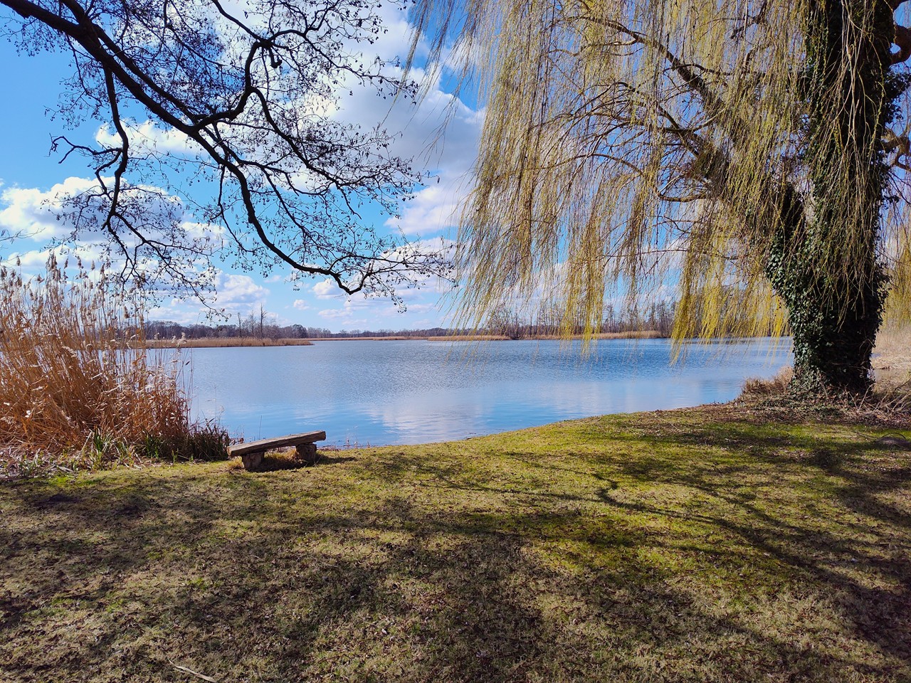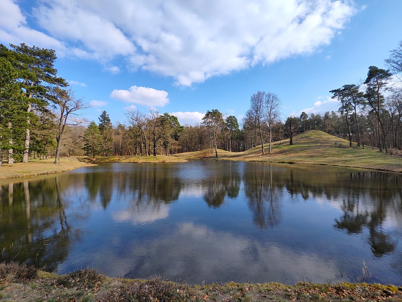 Kleiner Parkplatz direkt am Wasser mit fantastischem Blick auf die Teichlandschaft. Keine Infrastruktur.
