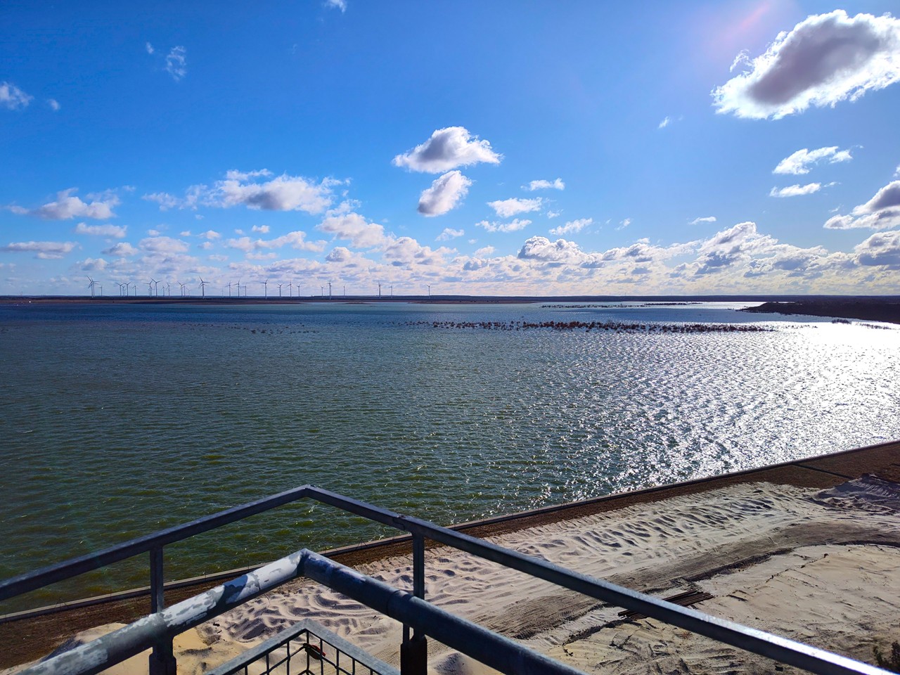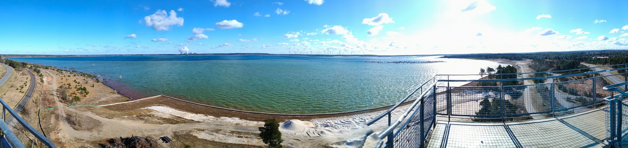 Die Flutung mit Spreewasser begann im April 2019 und erreichte im Dezember 2024 nach fünf Jahren den Nominalpegel von 62,5 Metern Normalhöhe über dem Meer. Mit 18,8 Quadratkilometern ist er der größte künstliche See Deutschlands. Auch hier gibt es einen Aussichtsturm, von dessen Spitze man sich einen Eindruck über die unglaubliche Größe des Areals machen kann.