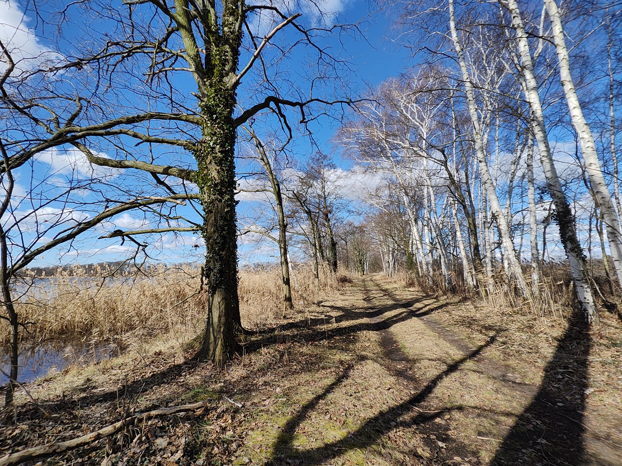 Tag 8Heute bin ich mit Doxi bei herrlich sonnigem, aber kaltem Winterwetter durch die größte zusammenhängende Teichlandschaft Deutschlands gewandert. Bei Peitz, am östlichen Rand des Spreewalds, erstrecken sich auf einer Fläche von rund 1000 Ha mehr als dreißig Teiche, die der kommerziellen Fischzucht (vorwiegend Karpfen) gewidmet sind.