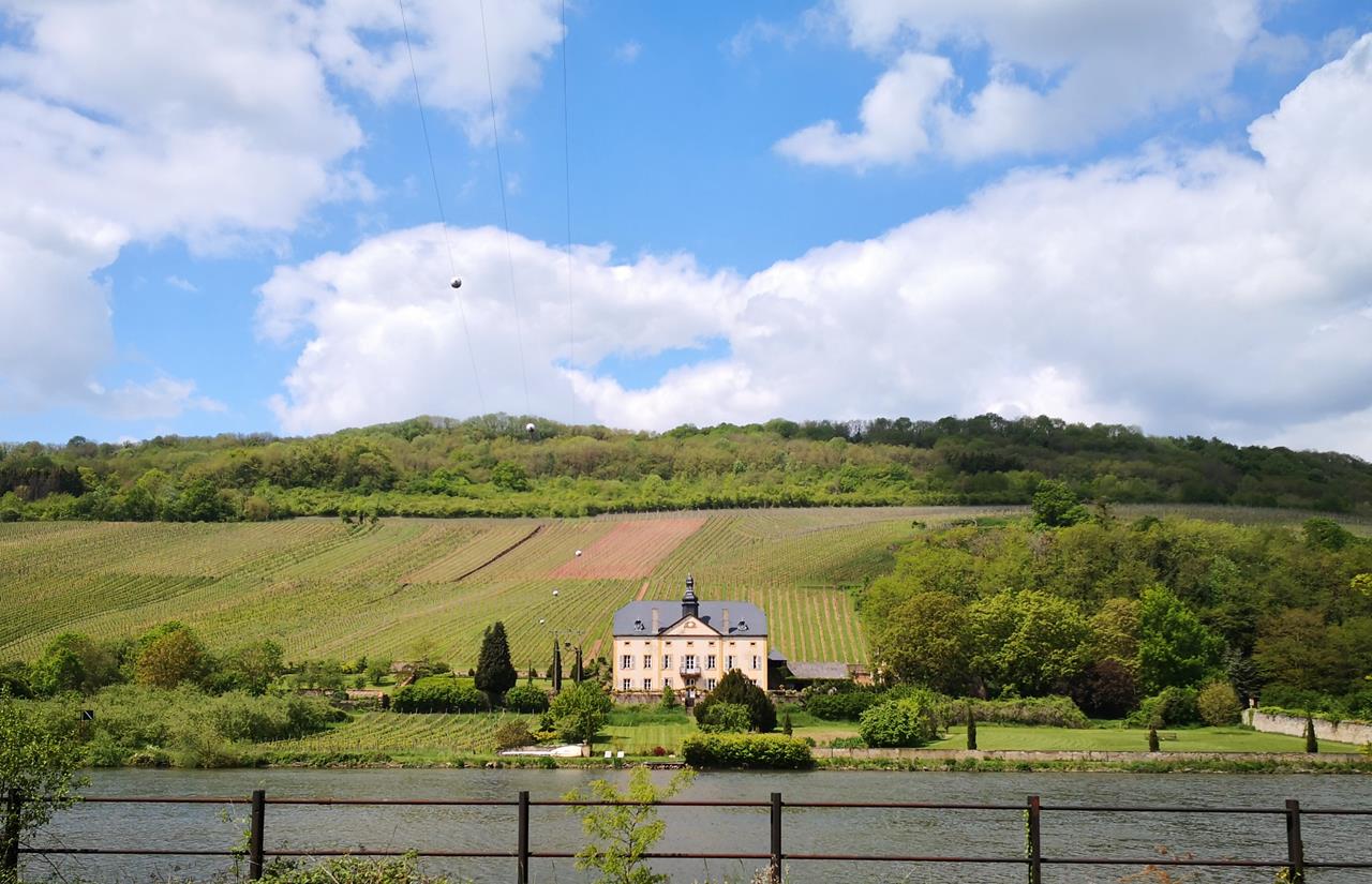 Im Weinort Contz-les-Bains wechseln wir wieder zurück auf die andere Seite der Mosel und laufen am Ufer entlang nach Sierck-les-Bains. Der Ort wird vom Chateau der Herzöge von Lorraine überragt.