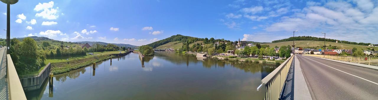 Panoramabild vom Moselübergang nach Luxemburg bei Schengen