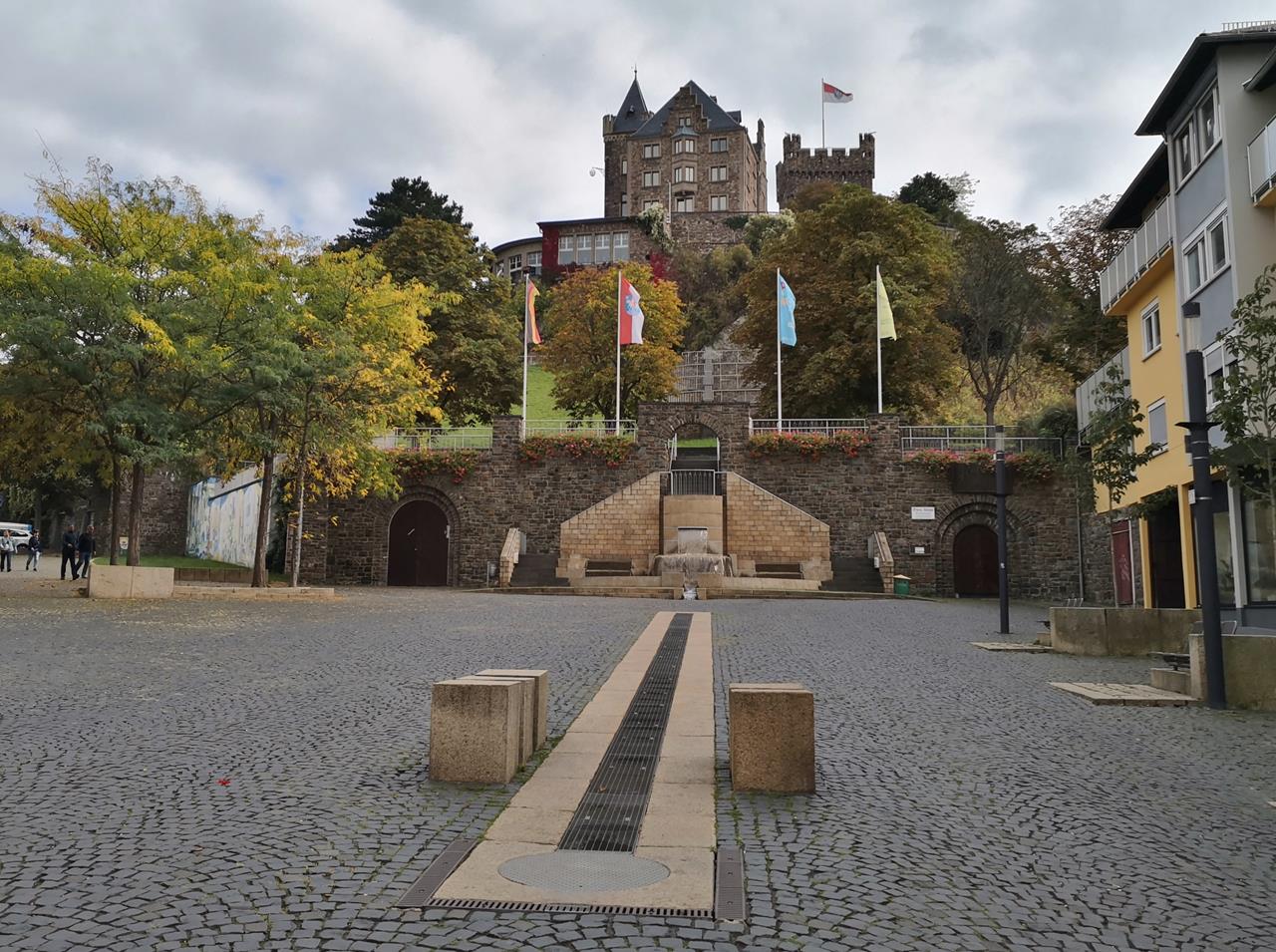 Blick vom Bürgermeister-Franz-Neff-Platz hinauf zur Burg Klopp