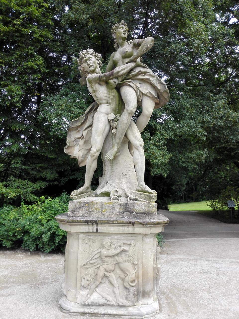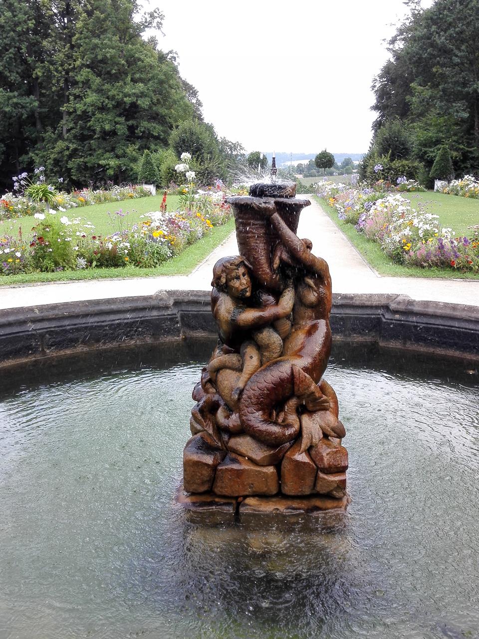 Im März waren wir schon einmal dort. Da waren alle Figuren im Park noch eingepackt und die Brunnen und Teiche leer. Nun erstrahlt alles in sommerlicher Pracht.